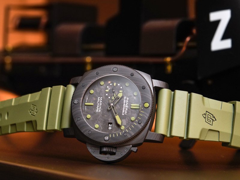 Жаль, что модель PAM985 не имеет функции GMT, но, как и лимитированная версия Marina Militare, о которой речь пойдет ниже, она оснащена автоматическим калибром P.9010 с трехдневным запасом хода и секундным мини-циферблатом на отметке «9:00». Следующая версия – PAM961 Marina Militare с черным корпусом из ультрасовременного композитного материала Carbotech с оливково-зелеными вкраплениями часовой разметки и таким же ремешком является четким напоминанием о том, что свои истоки бренд ведет с первой трети прошлого века, когда он был поставщиком подводных инструментов и часов для командос итальянских военно-морских сил, непосредственно перед началом Второй мировой войны. И новые часы напоминают об этом не только своим дизайном, поскольку 33 их новых владельцев получать возможность пройти настоящую тренировку в составе COMSUBIN (Comando Raggruppamento Subacquei e Incursori) – элитного подразделения итальянского флота. Panerai не раскрывает, что именно включает в себя тренировка COMSUBIN, похоже, чтобы получить более подробную информацию, сначала все-таки надо заплатить запрашиваемую за часы цену в $41.000.