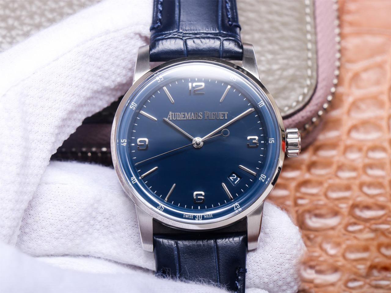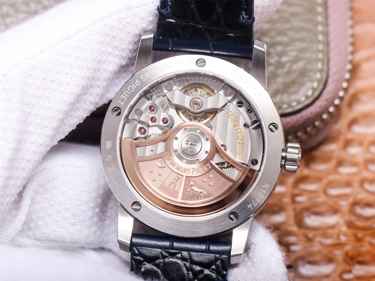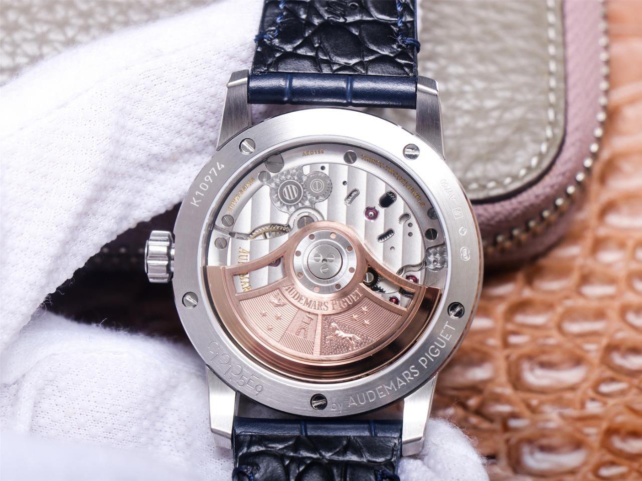 Кожаный ремешок, с фирменной позолоченной застежкой Audemars Piguet |