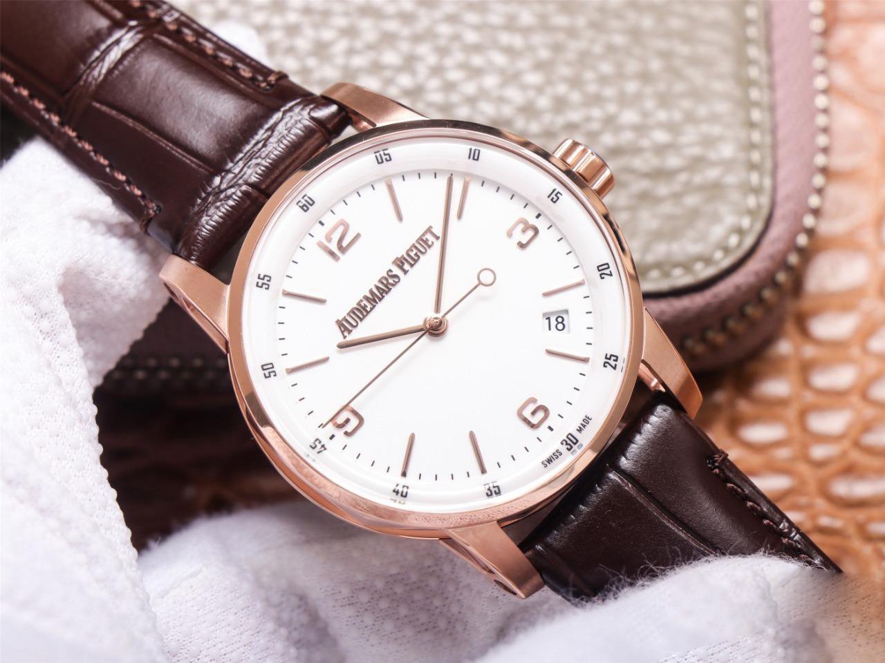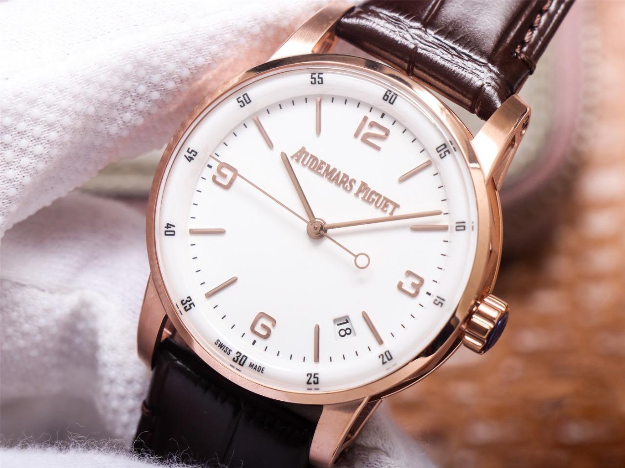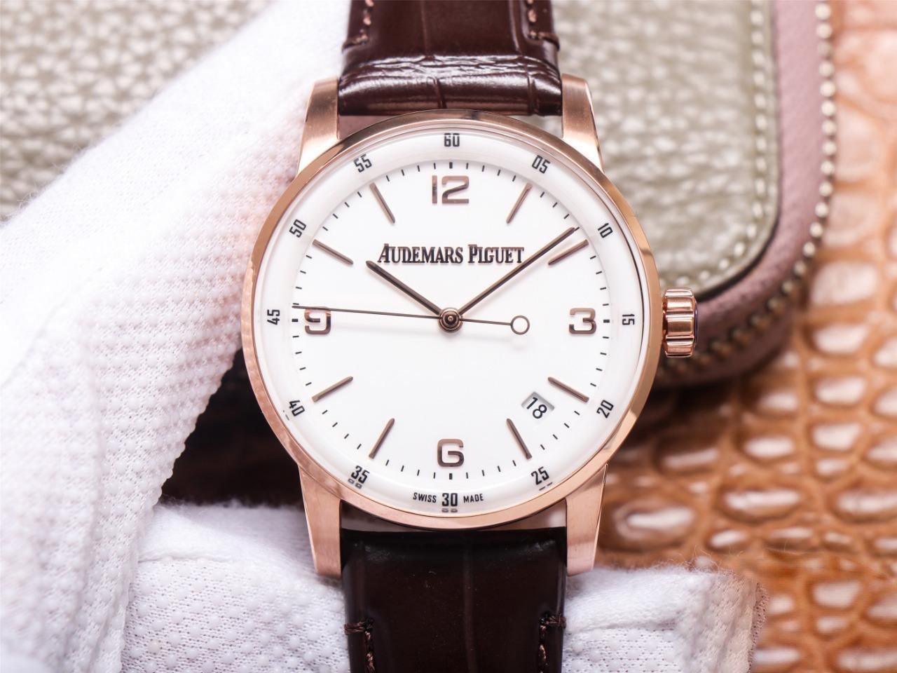 Кожаный ремешок, с фирменной позолоченной застежкой Audemars Piguet |
