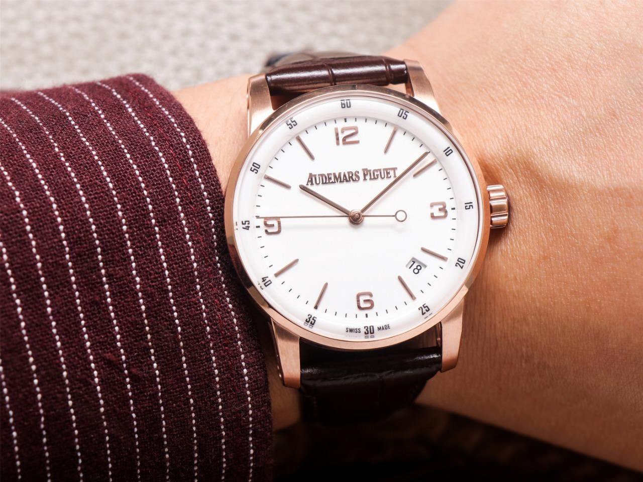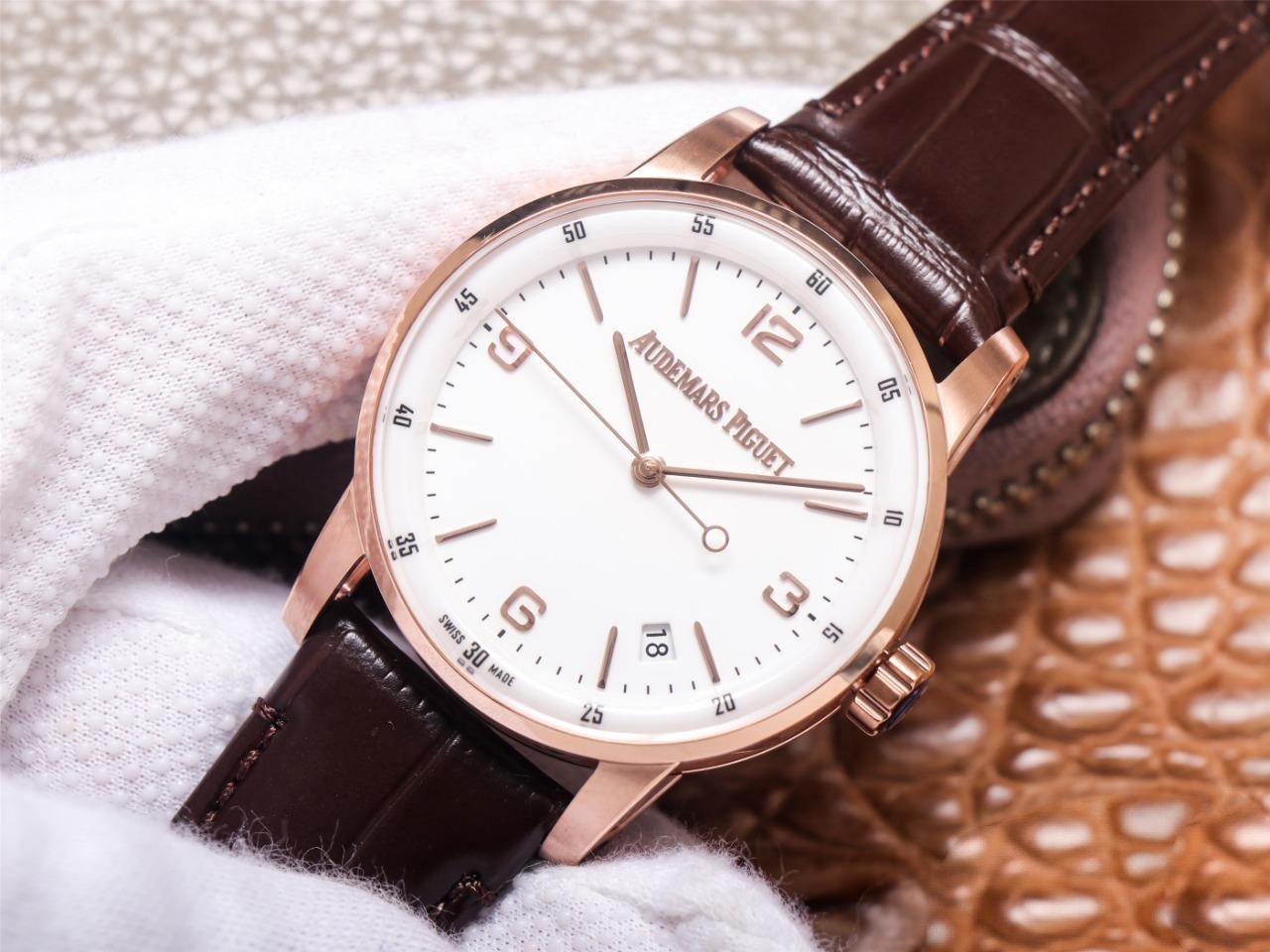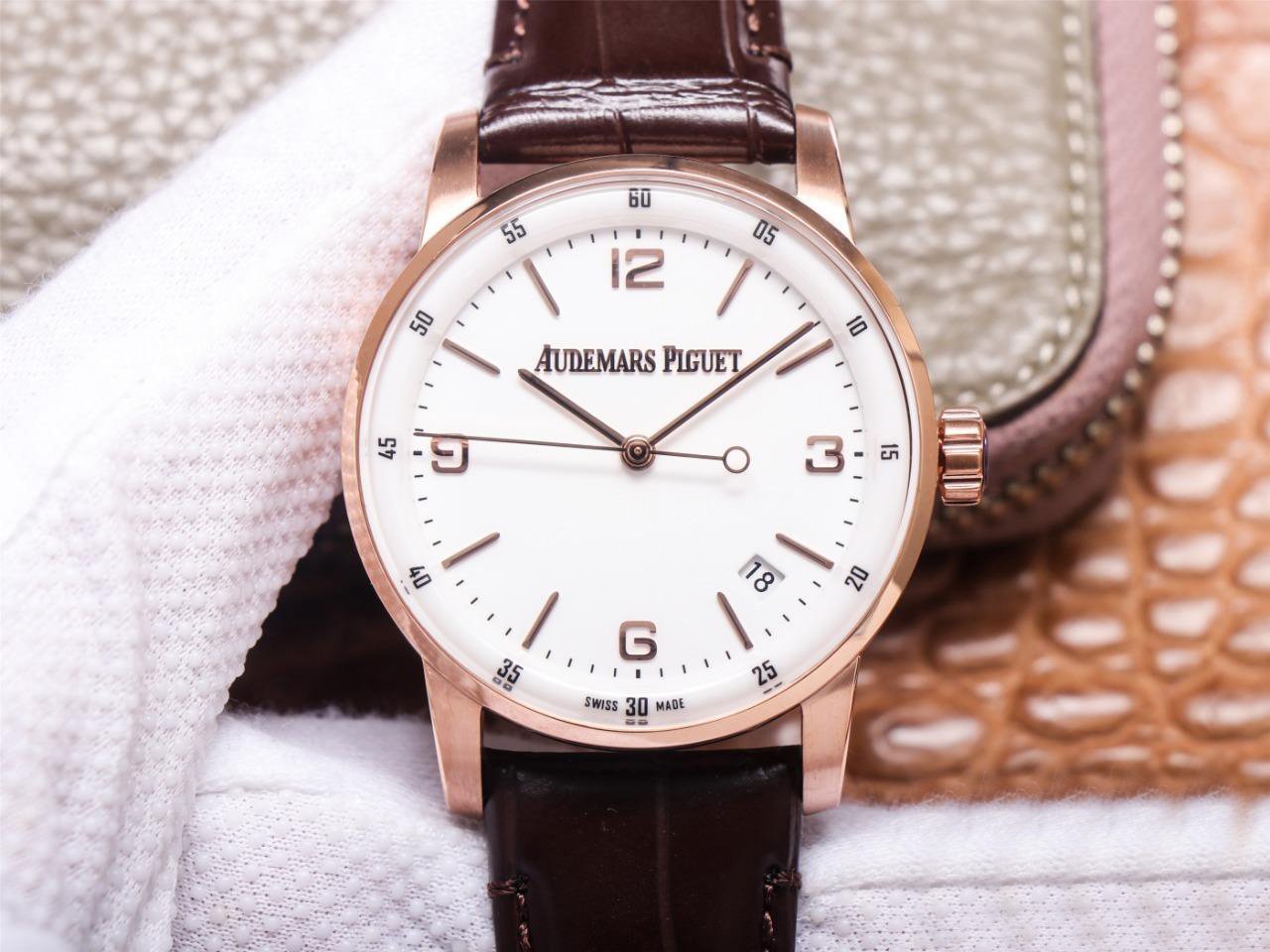 Кожаный ремешок, с фирменной позолоченной застежкой Audemars Piguet |