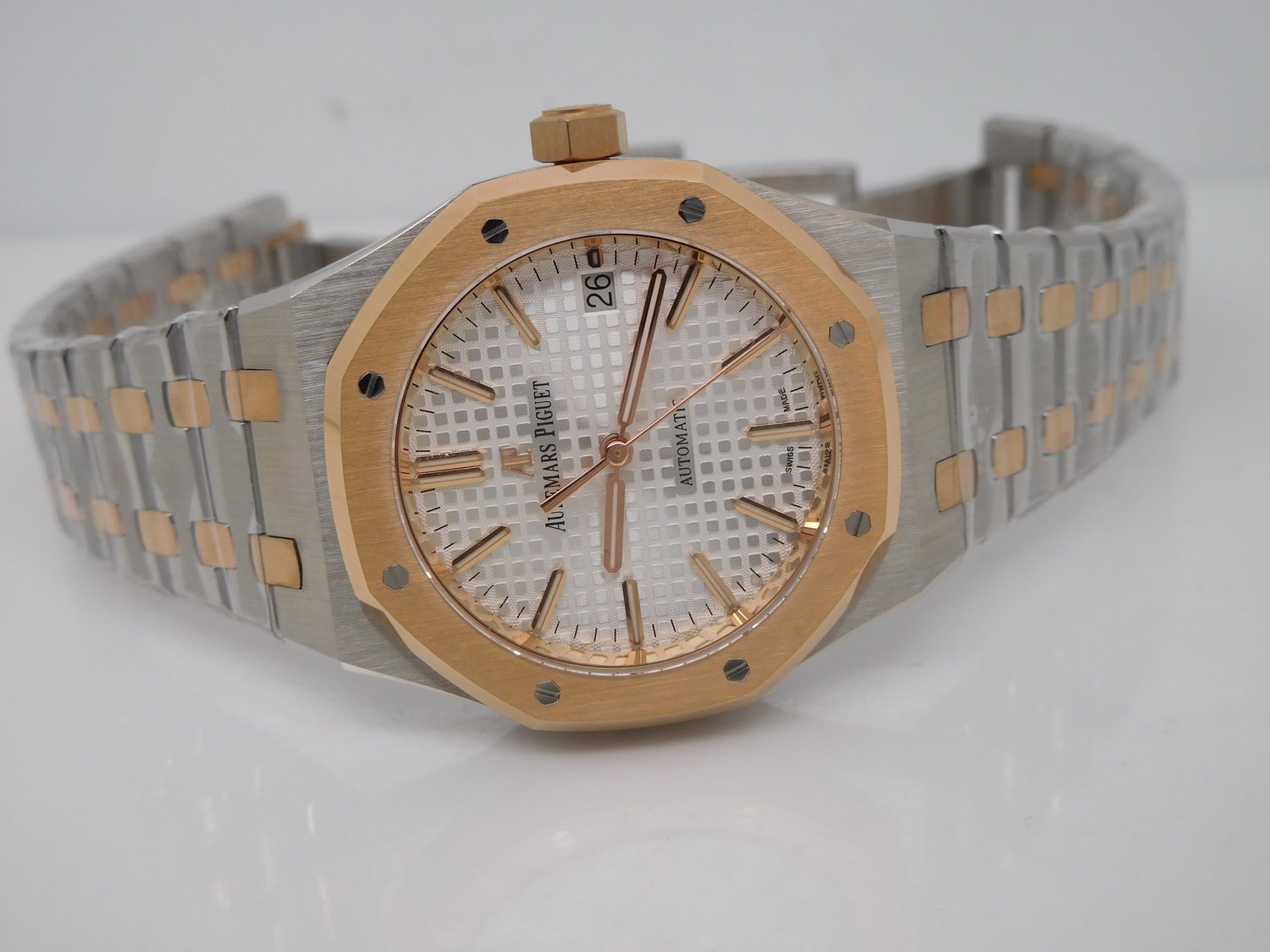 Стальной/позолоченный браслет из сатинированной стали образца 2015 года, с двойной раскладывающейся застежкой Audemars Piguet. |