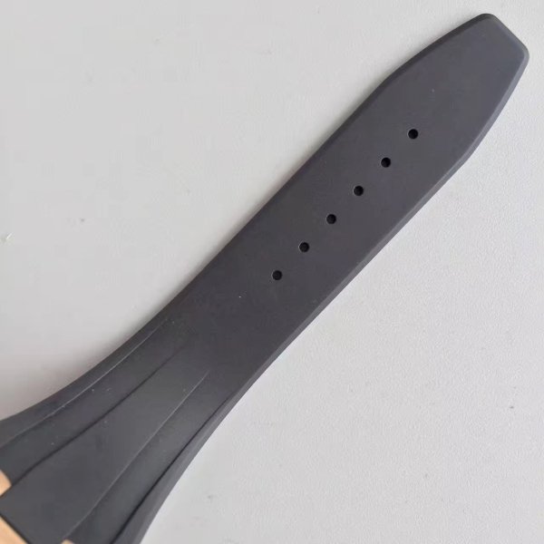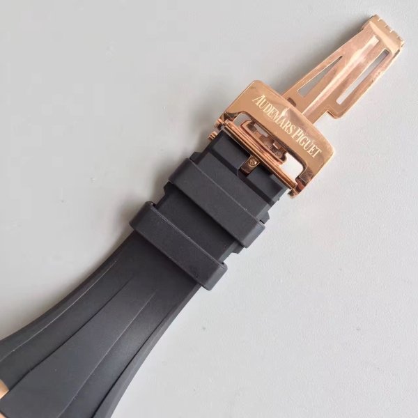 Черный каучуковый ремешок Royal Oak Offshore, с двойной позолоченной раскладывающейся застежкой Audemars Piguet (ремешок и застежка нового образца). |