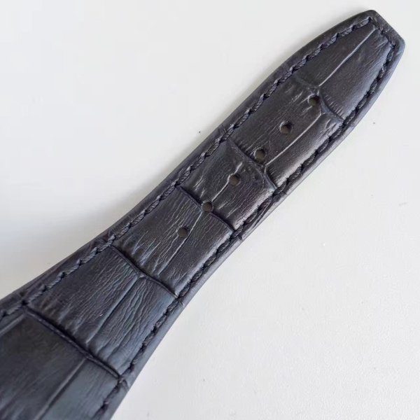 Черный кожаный ремешок, прошитый черными нитками, с двойной раскладывающейся позолоченной застежкой Audemars Piguet. |