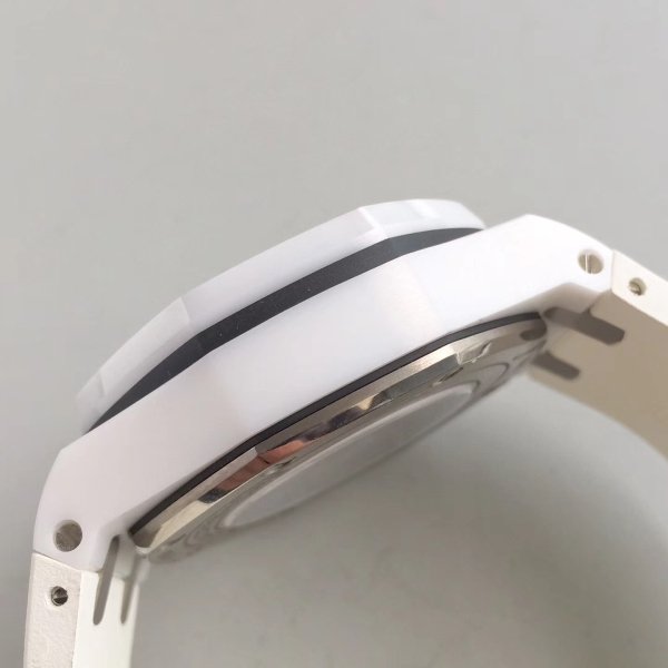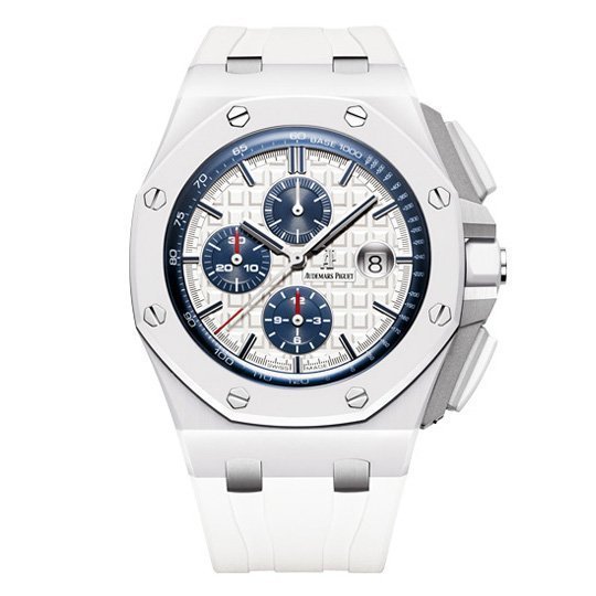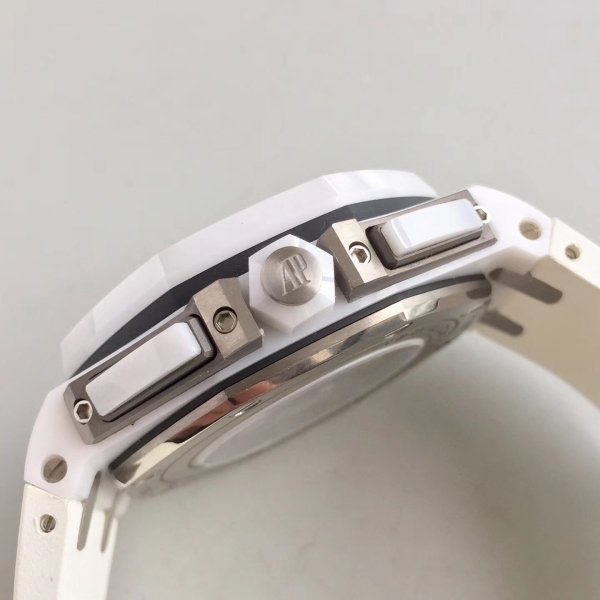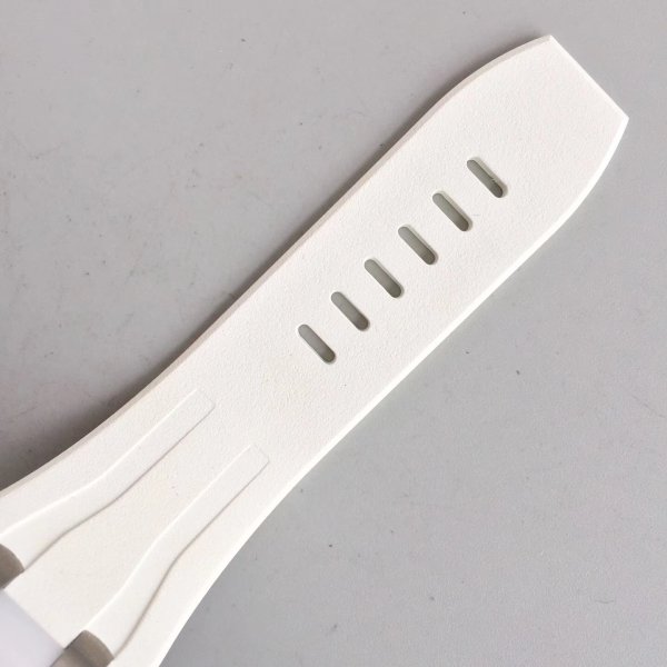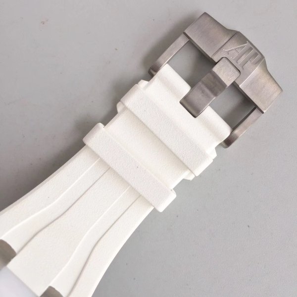 Белый каучуковый ремешок образца 2014 года, с простым титановым замком Audemars Piguet. |