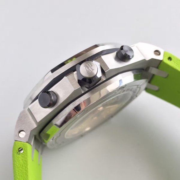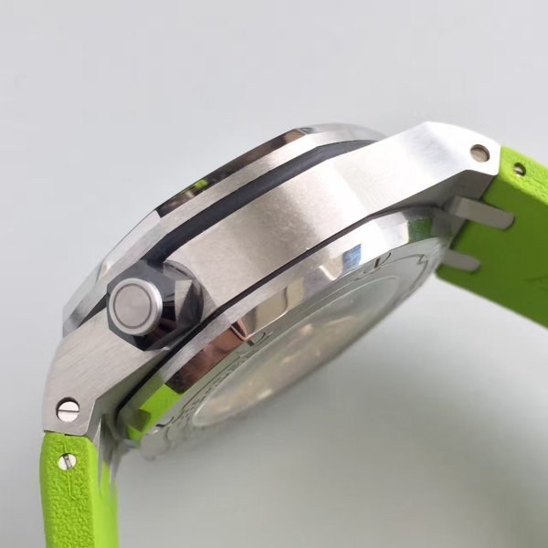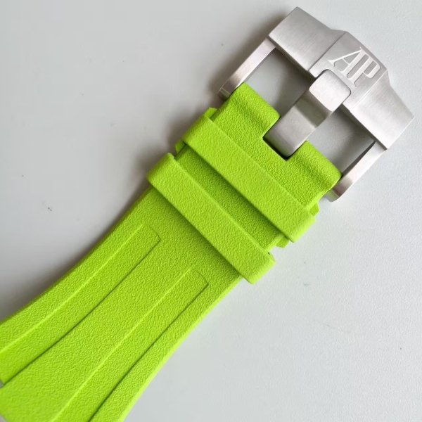 Зелёный каучуковый ремешок Royal Oak Diver, с простым (с помощью шипа) замком Audemars Piguet. |