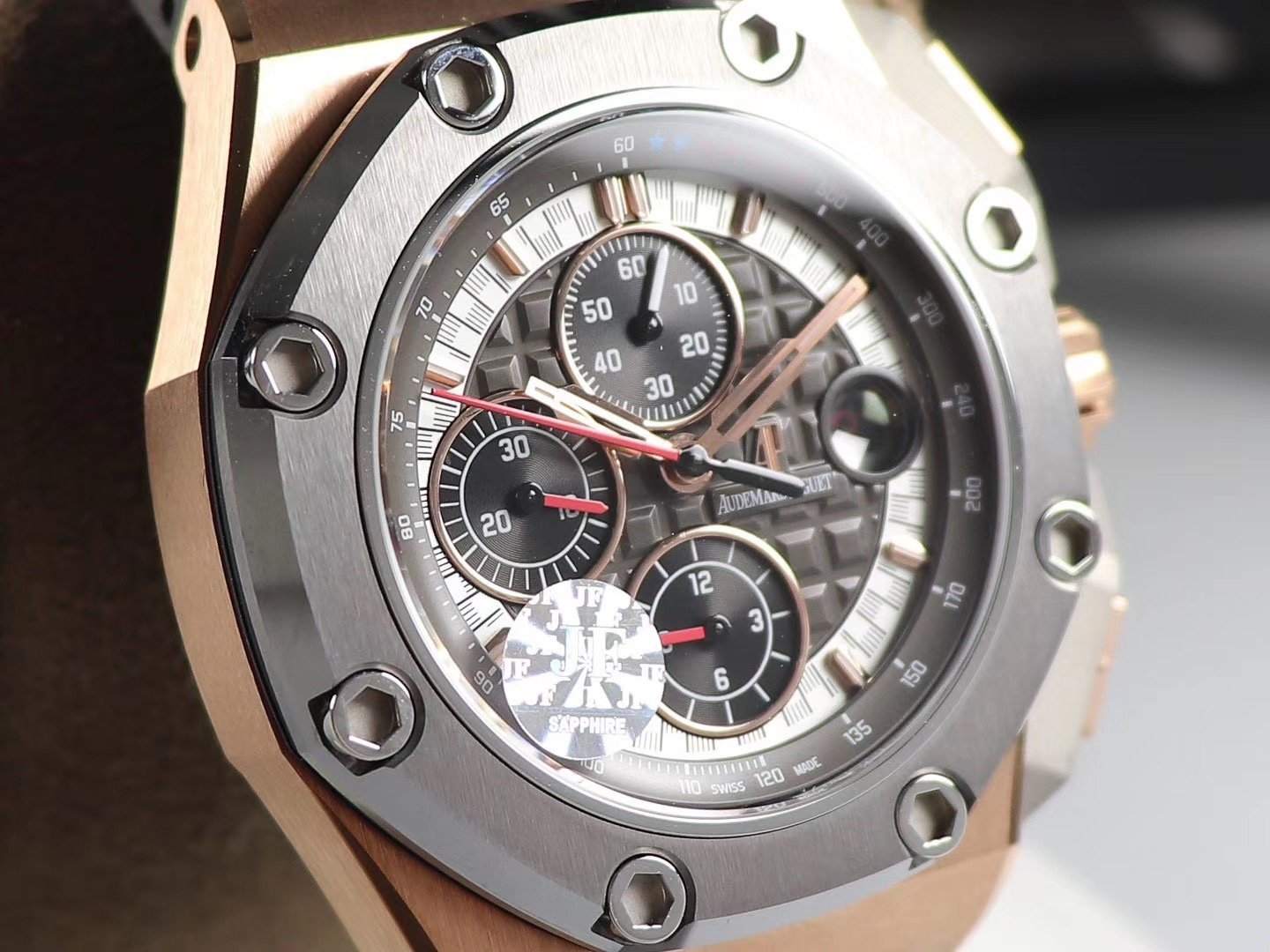 Фиксированный в одном положении 8 многогранными титановыми винтами, серый безель из специального сплава металлокерамики. |