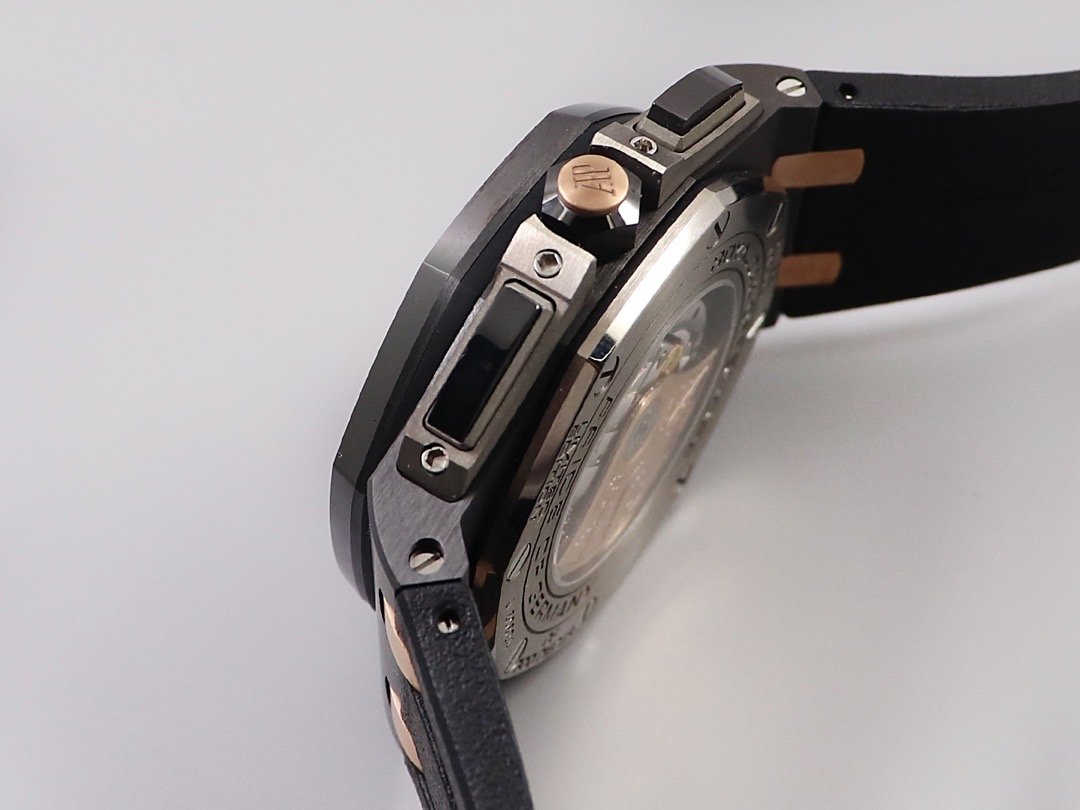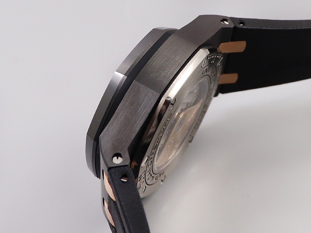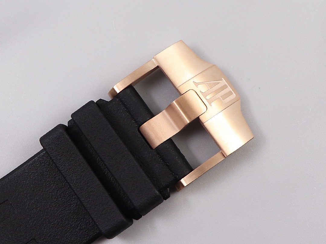 Черный каучуковый ремешок, с простым (с помощью шипа) замком Audemars Piguet. |