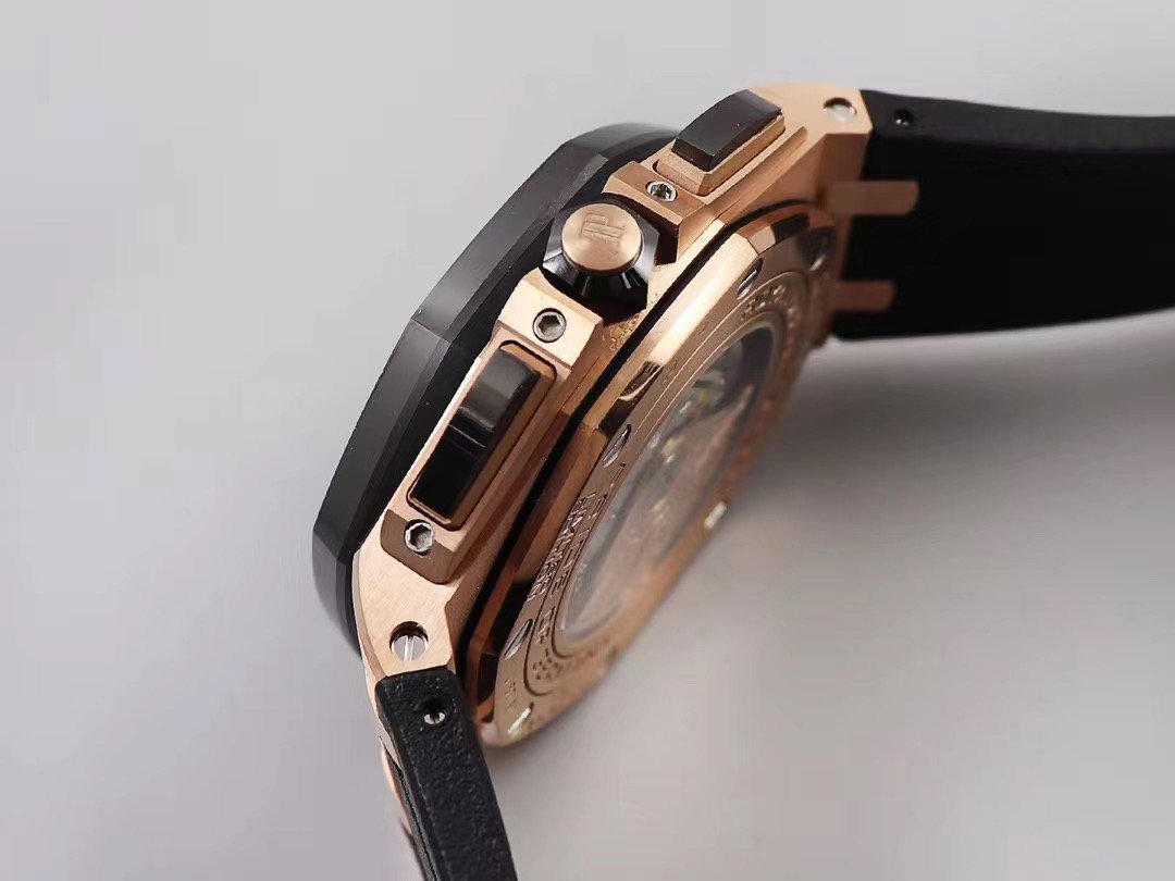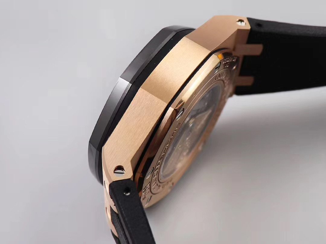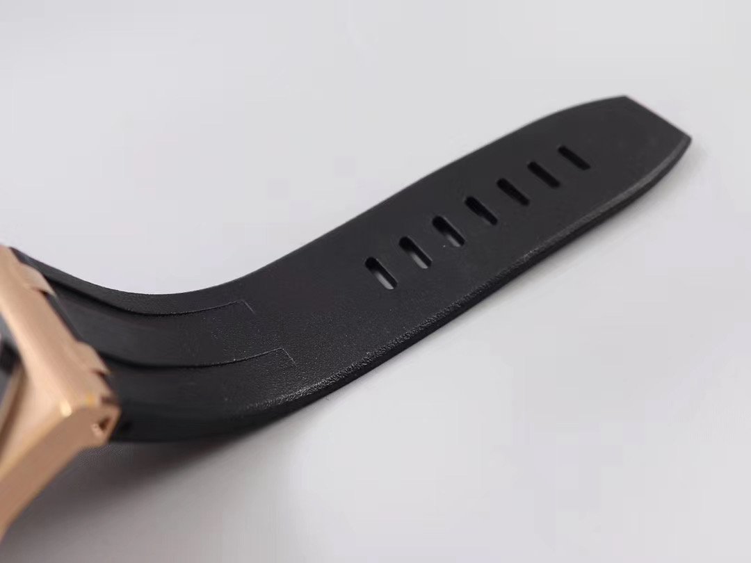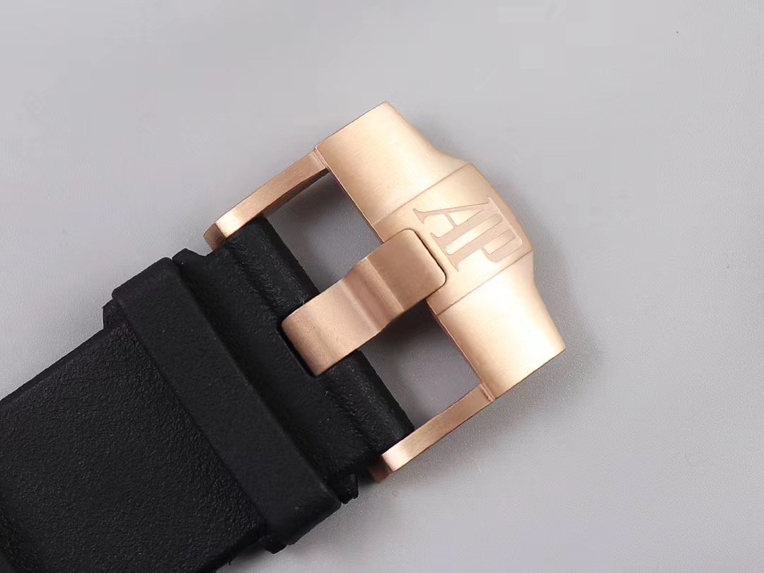 Черный каучуковый ремешок, с простым (с помощью шипа) замком Audemars Piguet. |