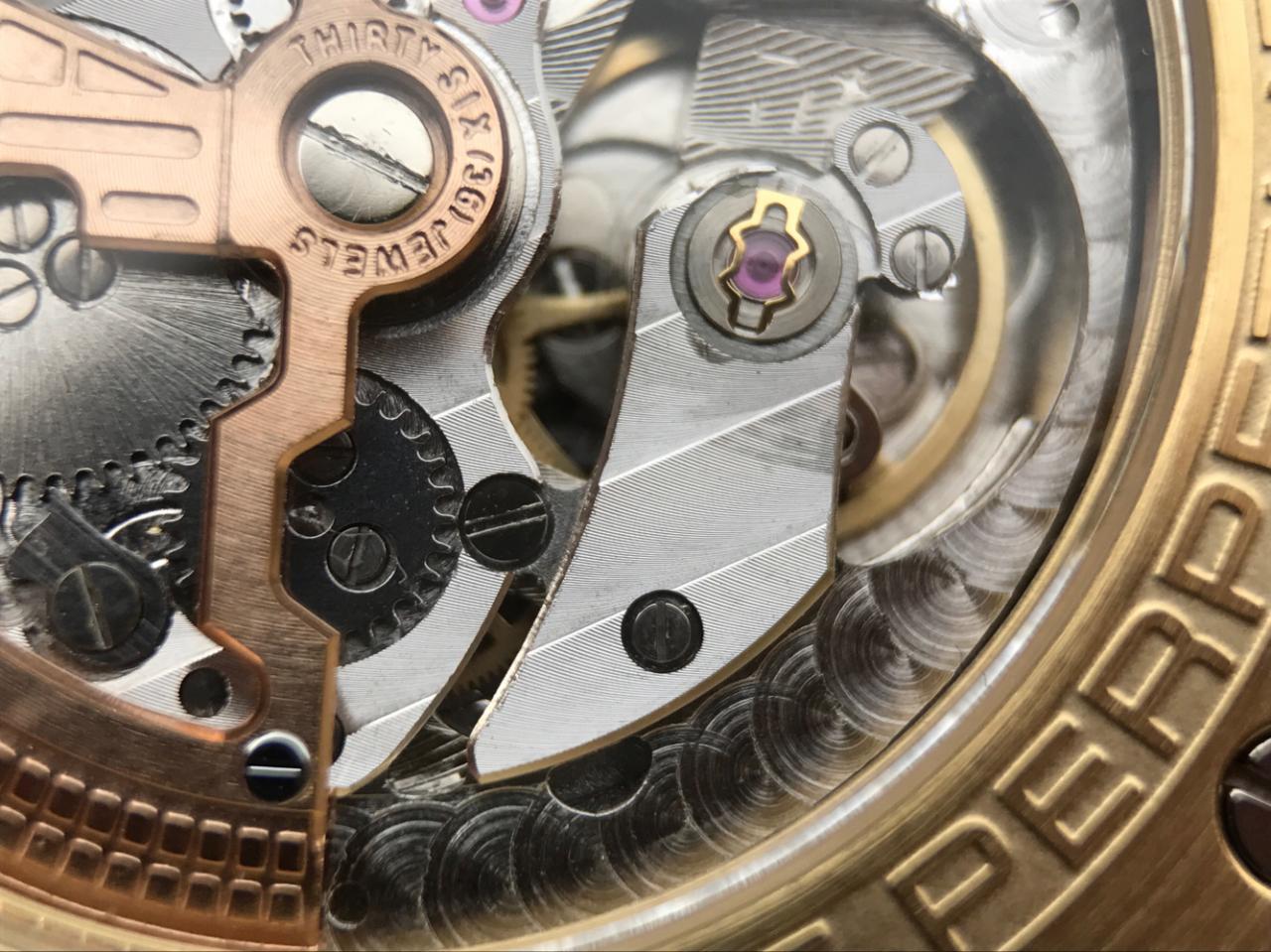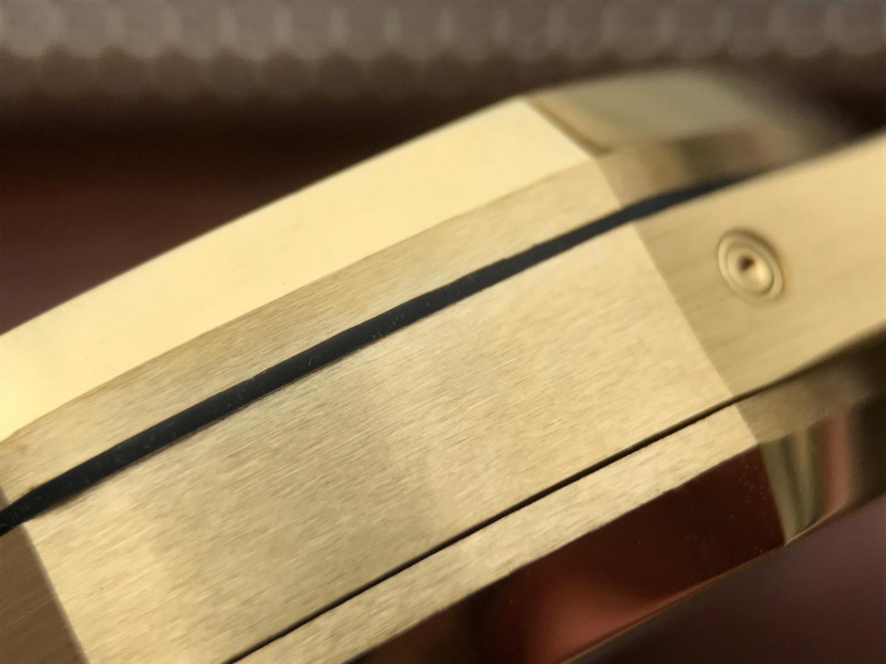 Фиксированный в одном положении 8 шестигранными винтами, позолоченный безель.