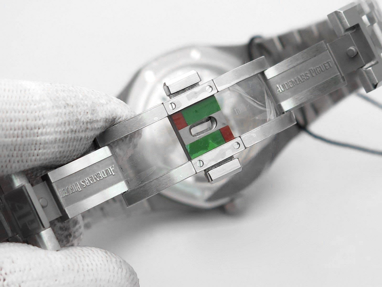 Стальной браслет из сатинированной стали и полированными гранями, с двойной раскладывающейся застежкой Audemars Piguet. |