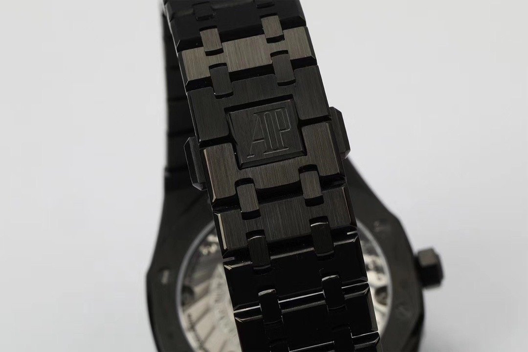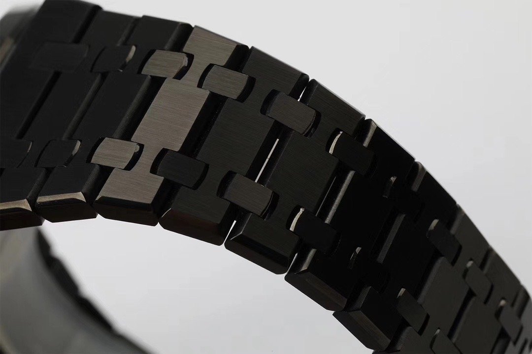 Стальной браслет из сатинированной стали, покрытый чёрным DLC напылением, с двойной раскладывающейся застежкой Audemars Piguet. |