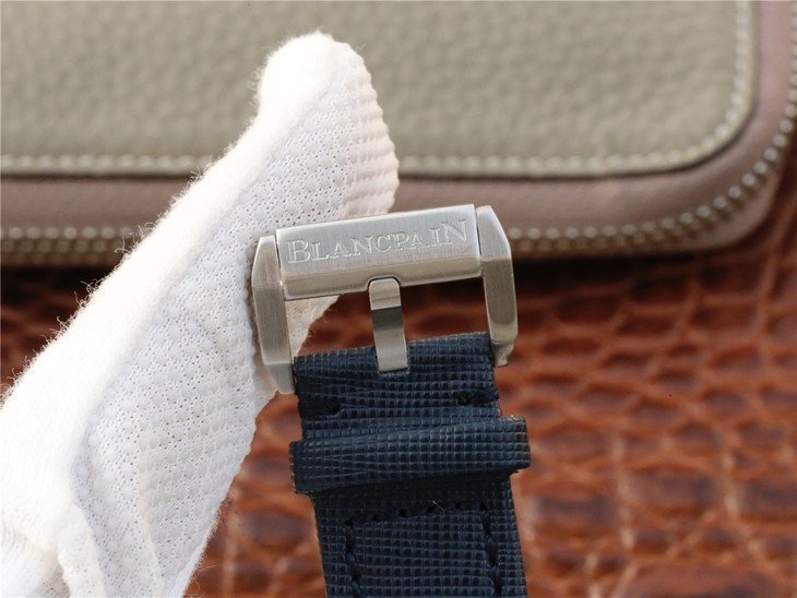 Двухслойный синий парусиновый ремешок, с простой (с помощью шипа) титановой застежкой Blancpain |
