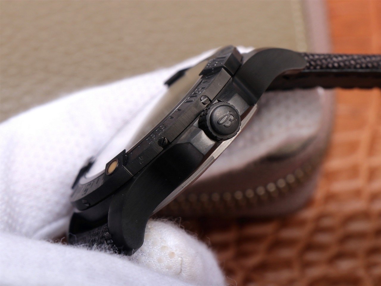 Однонаправленный, вращающийся черный титановый безель, с минутными метками и направляющей люминесцентной меткой в отметке на 12.00 часов |