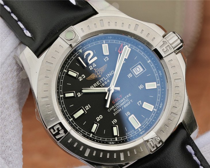 Черный, с круговым гильошированием по всему радиусу. Полированные часовые риски и стрелки, покрытые люминесцентным составом Super LumiNova С1. Окно даты, расположенное в отметке на 15.00 часов. |