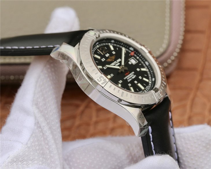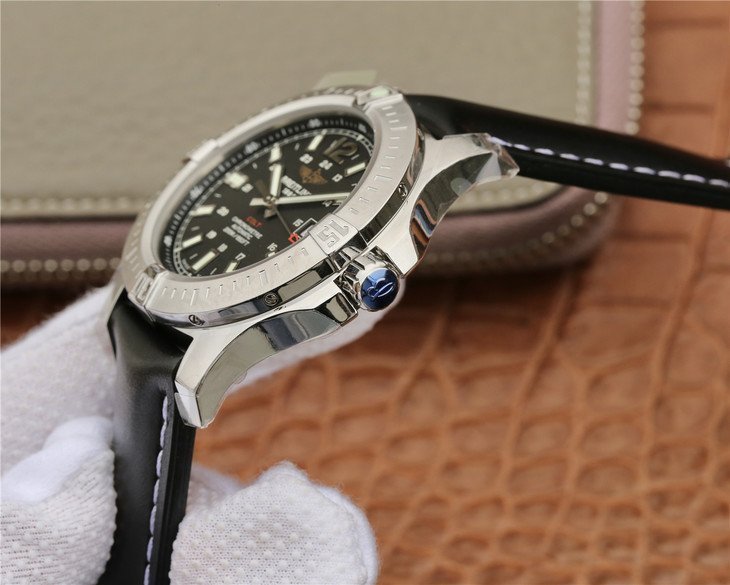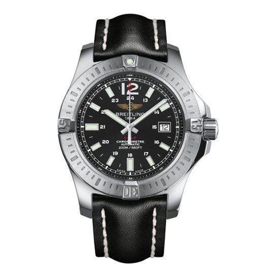 Черный кожаный ремешок, с простым (с помощью шипа) замком Breitling. Либо стальной браслет из сатинированной стали Professional III. |