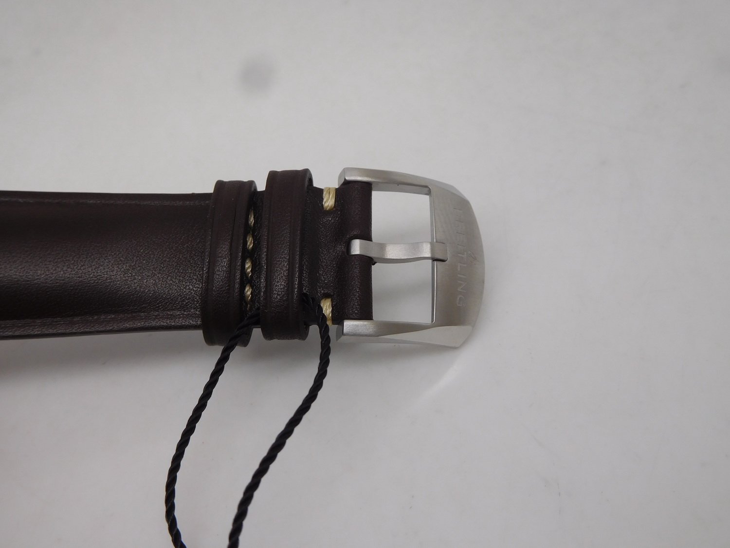 Чёрный кожаный ремешок из телячьей кожи, с простой (с помощью шипа) застёжкой Breitling. |