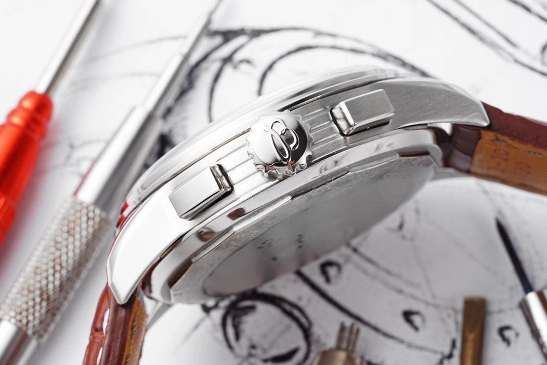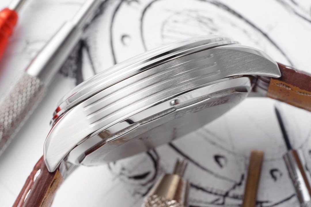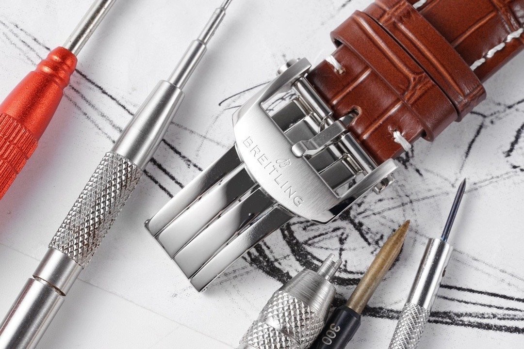 Коричневый кожаный ремешок, с двойной раскладывающейся стальной застежкой Breitling. |