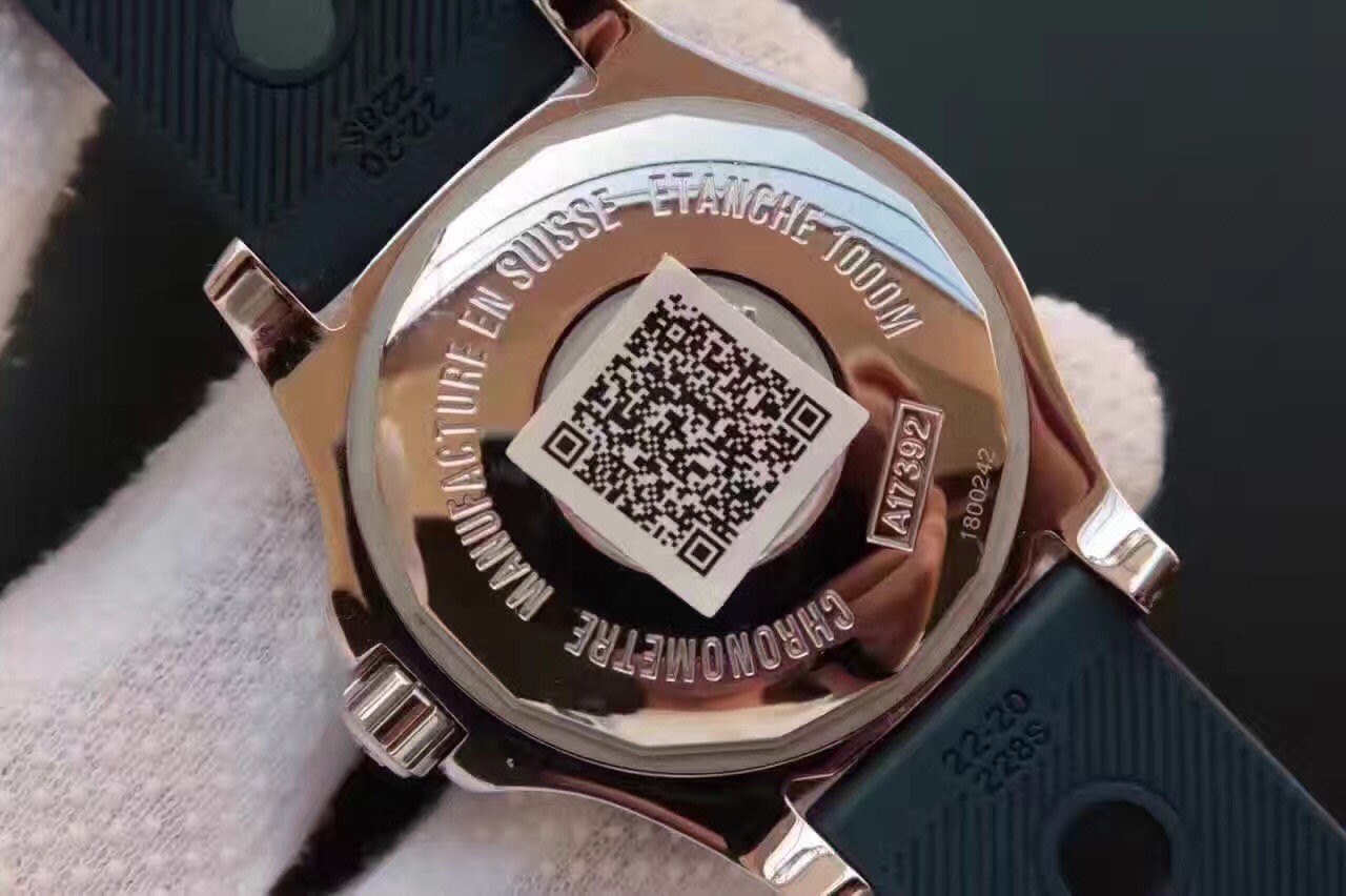 Однонаправленный вращающийся синий керамический безель, с минутными метками, и направляющей люминесцентной меткой в отметке на 12:00 часов.