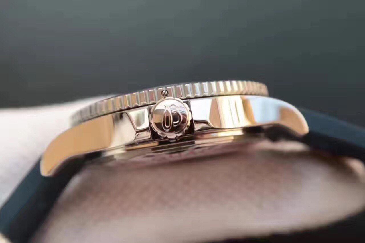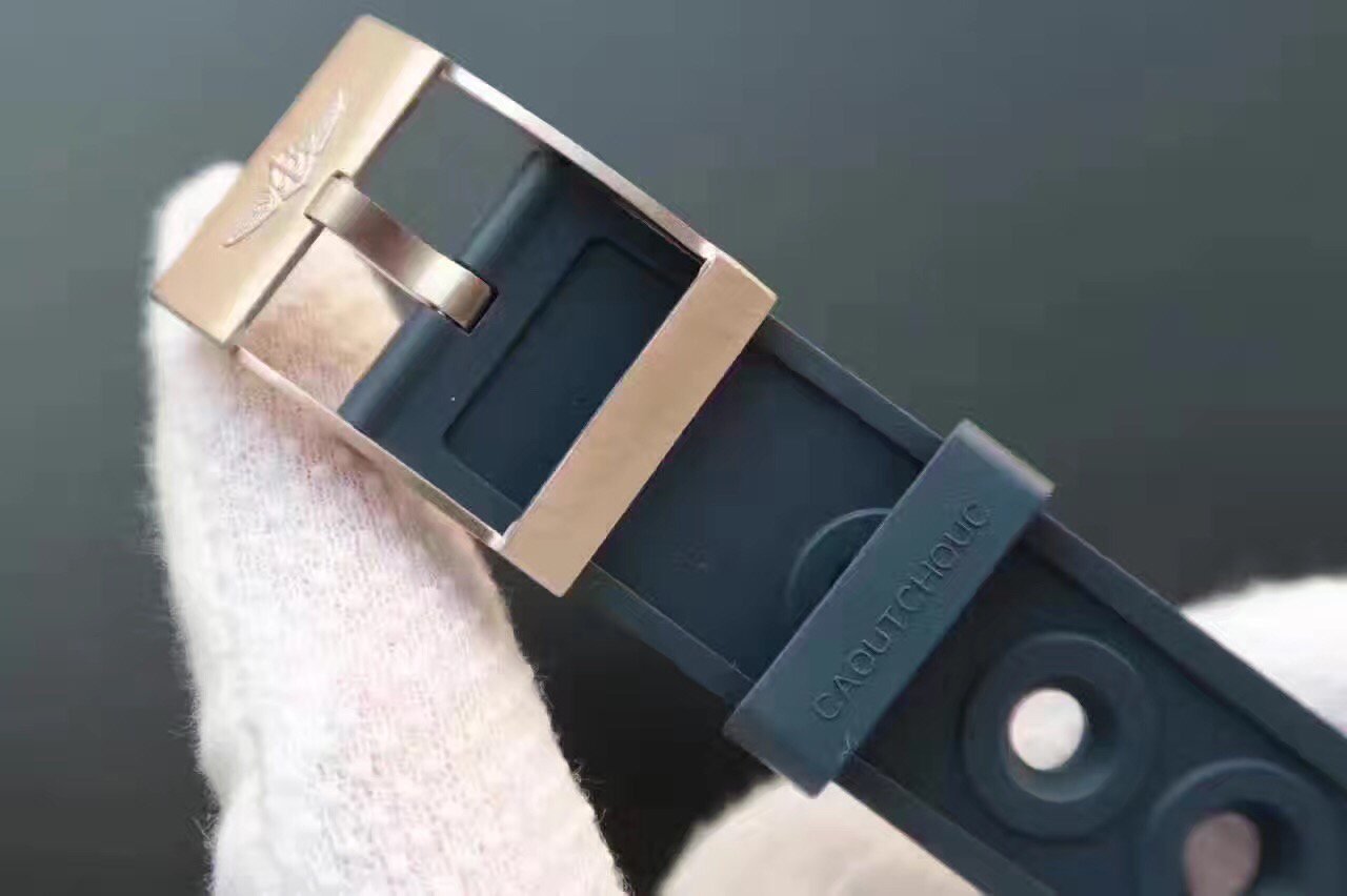 Оригинальный синий каучуковый ремешок SuperOcean, с простым (с помощью шипа) замком Breitling. Либо стальной браслет из сатинированной стали Breitling Professional III.