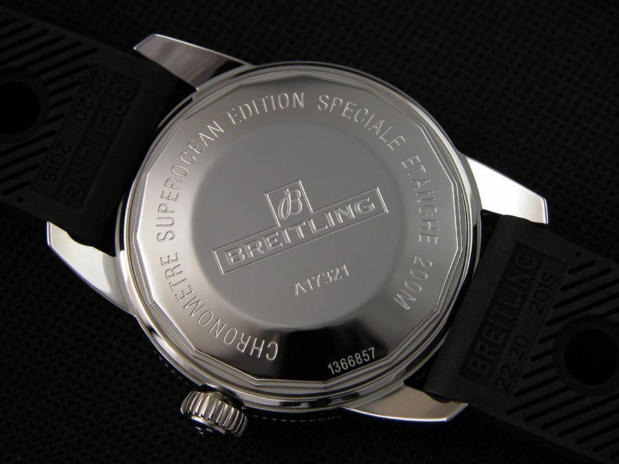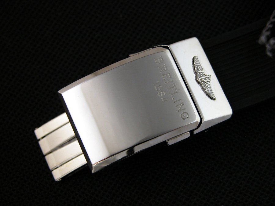 Чёрный каучуковый ремешок Breitling Ocean Racer, с двойной раскладывающейся застежкой Breitling с системой удлинения. |