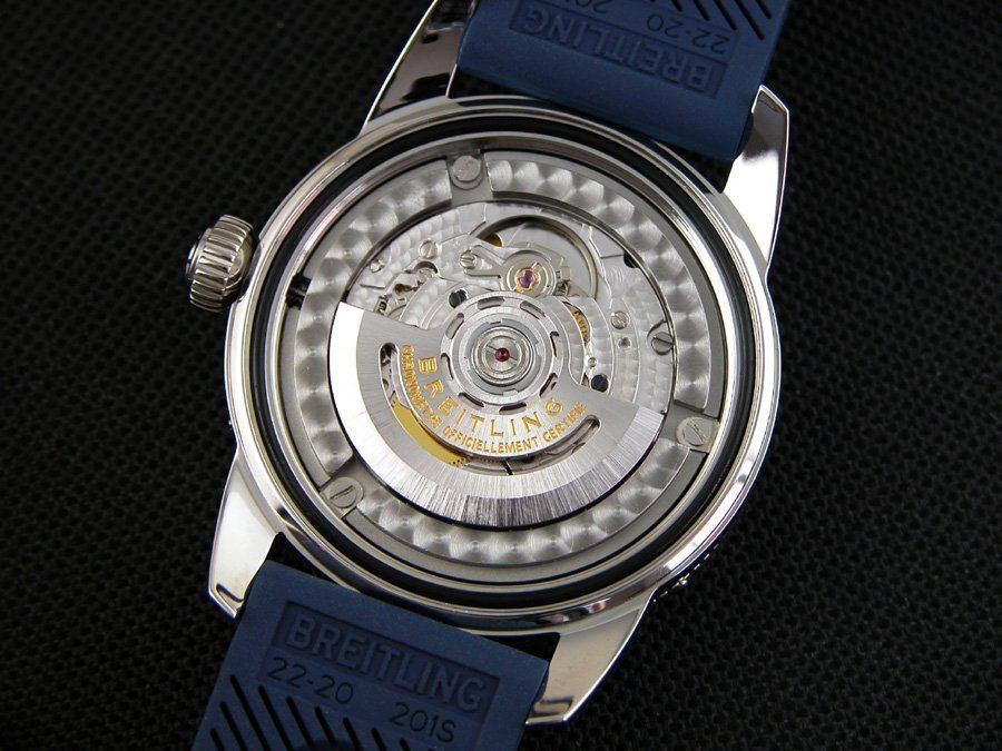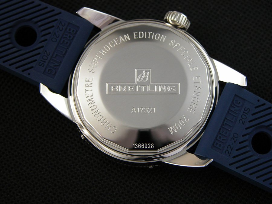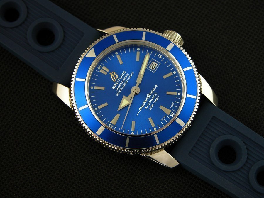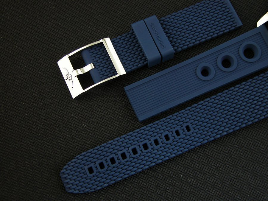 Синий каучуковый ремешок Breitling Ocean Racer, с двойной раскладывающейся застежкой Breitling с системой удлинения. |