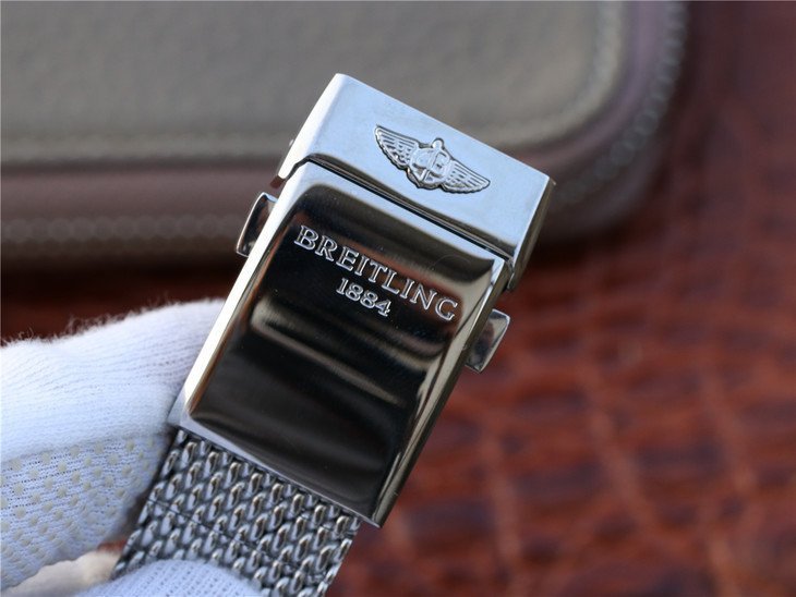 Стальной браслет миланского плетения, с двойной раскладывающейся застежкой Breitling. Либо кожаный/каучуковый ремешок. |