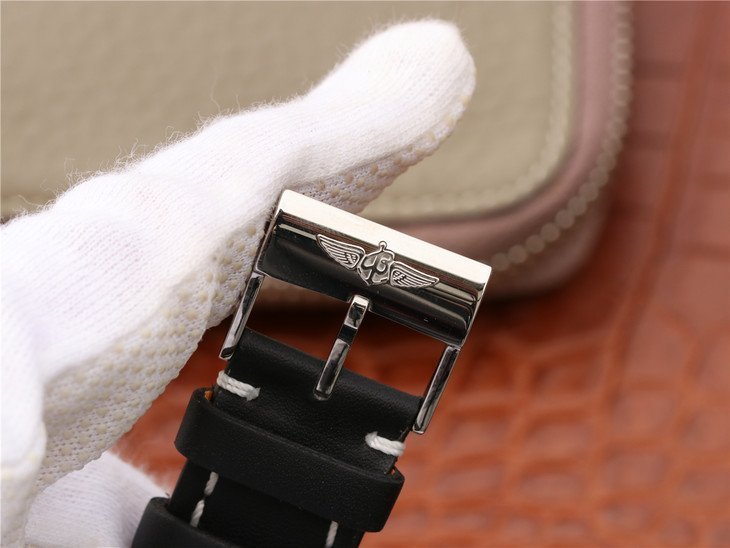 Чёрный кожаный ремешок, с простым (с помощью шипа) замком Breitling. |