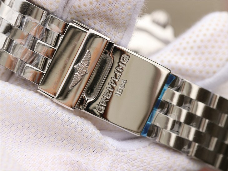 Стальной браслет из полированной стали Breitling Pilot, с двойной раскладывающейся застежкой Breitling. Либо кожаный ремешок. |