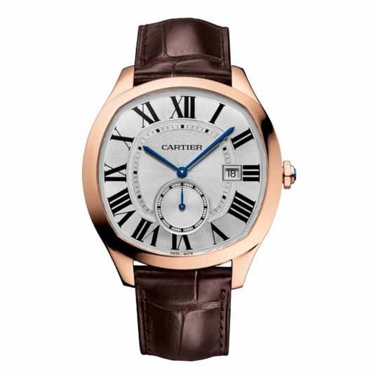 Коричневый кожаный ремешок, с двойной раскладывающейся позолоченной застежкой Cartier. |