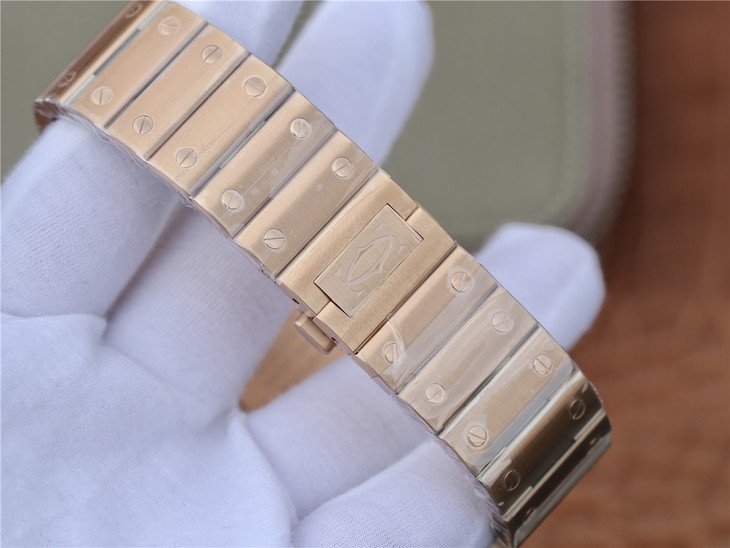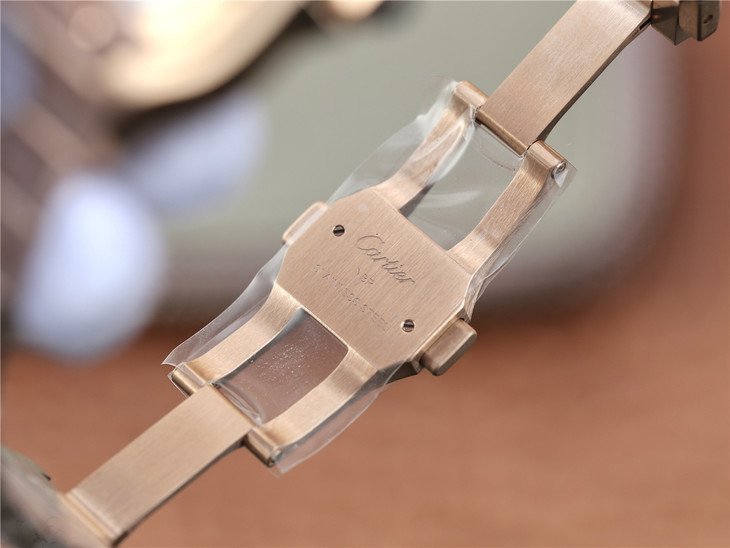 Позолоченный браслет из сатинированной стали нового образца, с системой быстрого укорачивая SmartLinks, с двойной раскладывающейся застежкой Cartier. Либо кожаный ремешок, с двойной раскладывающейся застежкой Cartier. Система быстрой смены браслета.