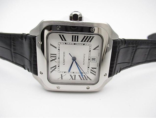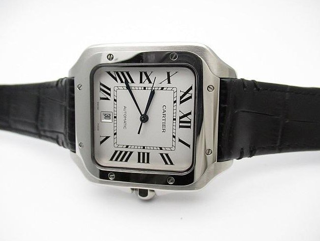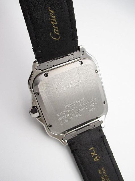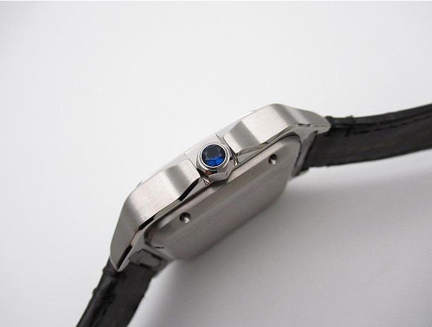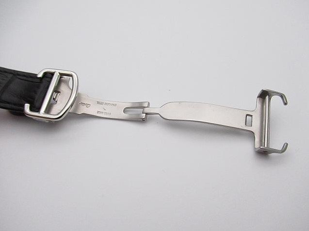 Черный кожаный ремешок, с простым (с помощью шипа) замком Cartier. |