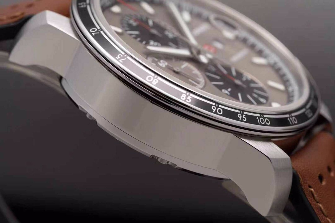 Серого цвета нанесен гильошированный рисунок в виде концентрических кругов. Счетчики хронографа черного цвета. Малый секундный циферблат – серого. |
