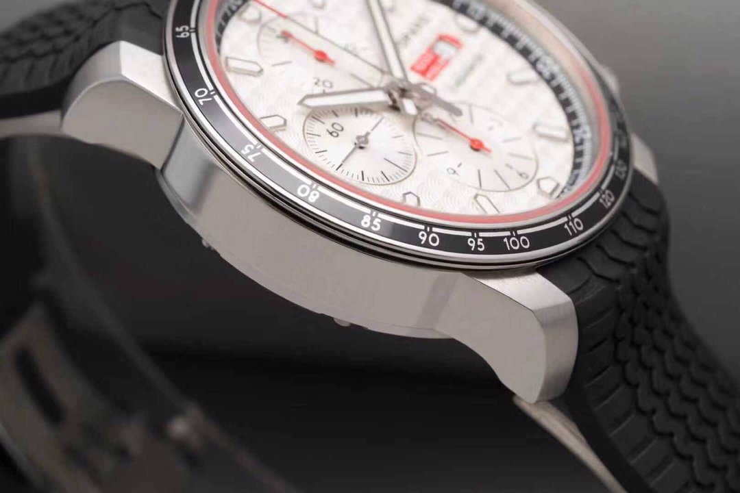 Белого цвета нанесен гильошированный рисунок в виде концентрических кругов. Счетчики хронографа черного цвета. Малый секундный циферблат – серого. |