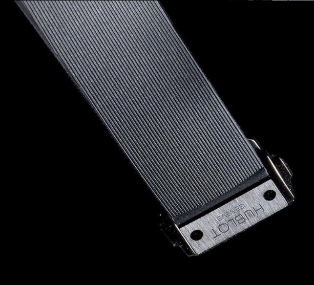 Синий каучуковый (кожа/каучук) ремешок, с двойной раскладывающейся керамической застежкой Hublot. |