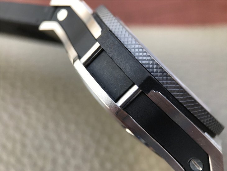 Фиксированный в одном положении 6 Н-образными титановыми винтами полированный, черный керамический безель. |