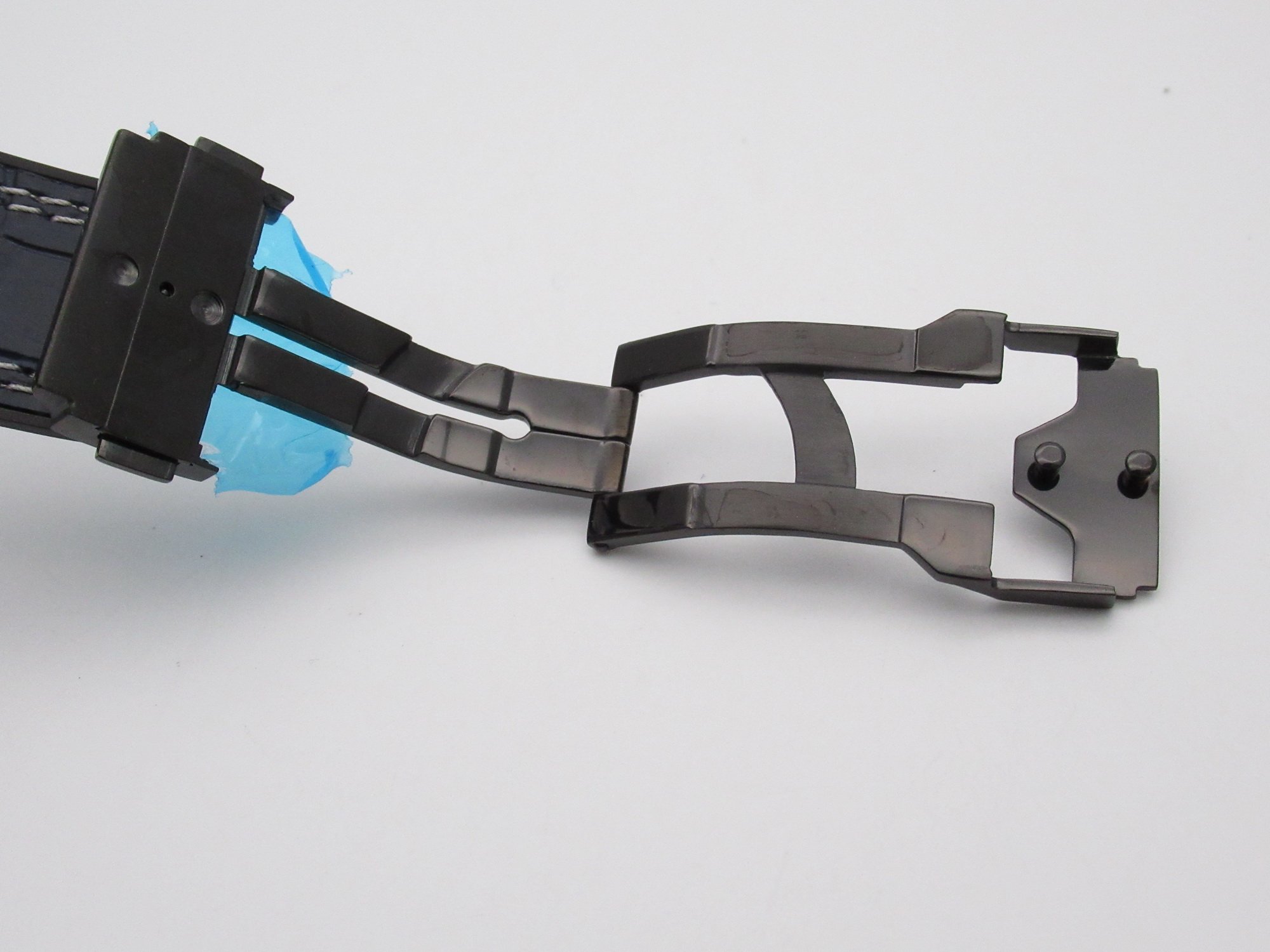 Синий каучуковый (кожа/каучук) ремешок, с двойной раскладывающейся керамической застежкой Hublot. |