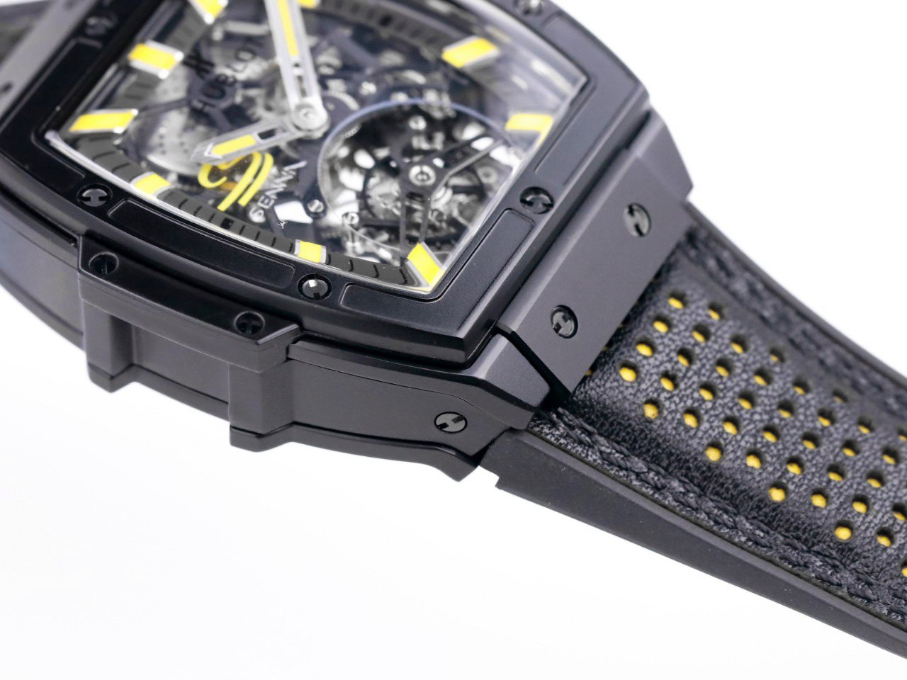 Черная кожа теленка с желтой подкладкой и акцентами. |