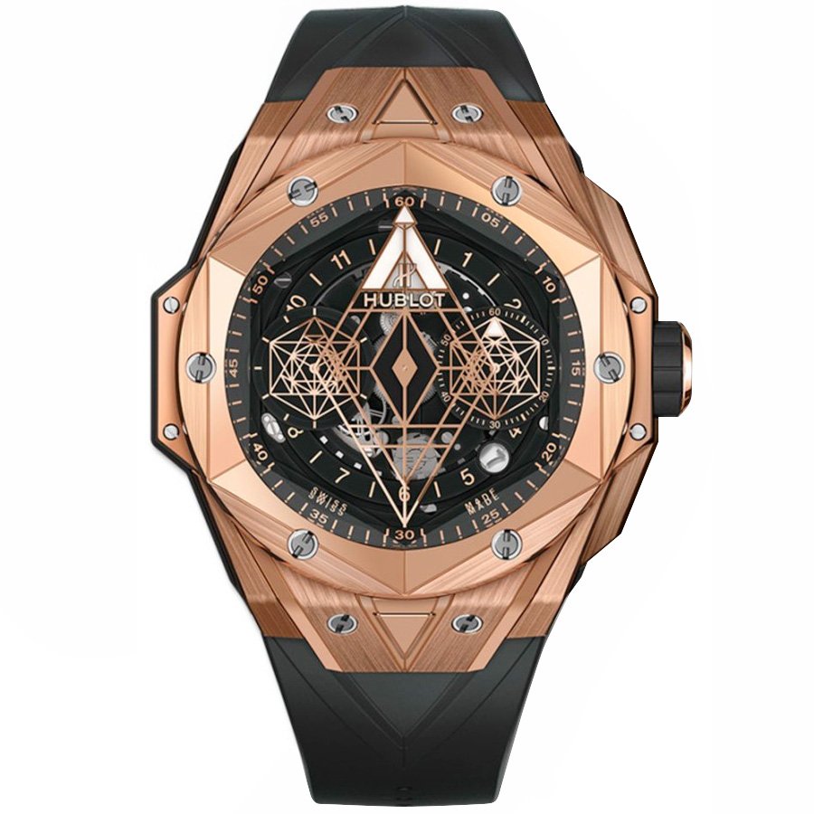Черный каучуковый ремешок, с двойной раскладывающейся стальной застежкой Hublot. Система быстрой смены ремешка при помощи пушеров на корпусе часов |