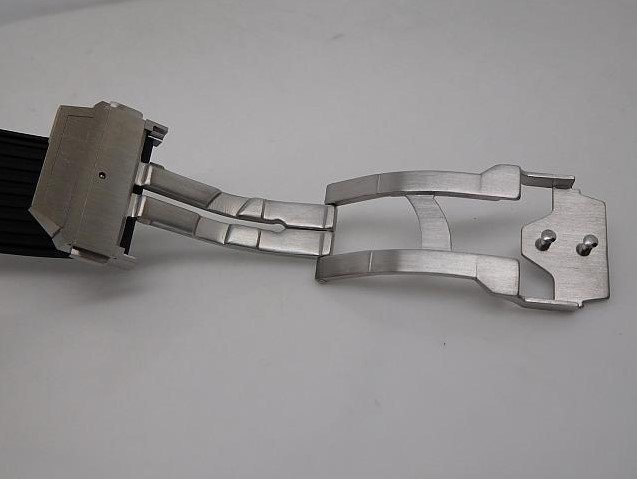 Чёрный кожаный/каучуковый ремешок, с двойной, раскладывающейся застежкой Hublot и системой быстрой смены ремешка. |