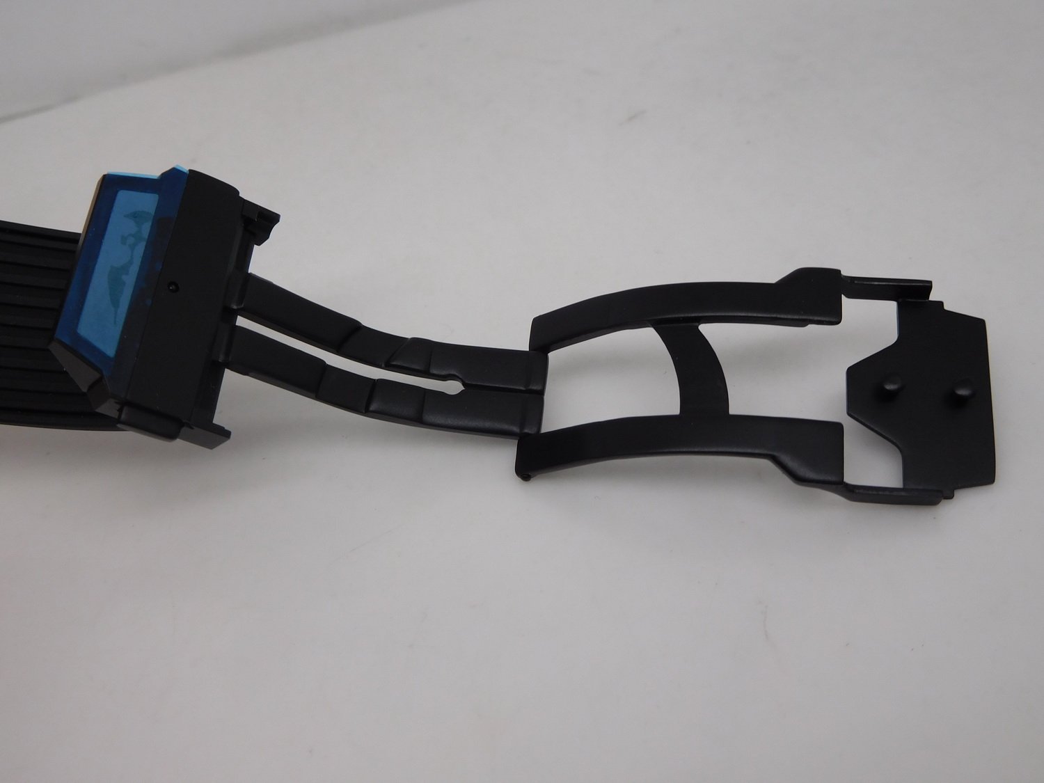 Чёрный каучуковый ремешок, с двойной, раскладывающейся застежкой Hublot и системой быстрой смены ремешка. |