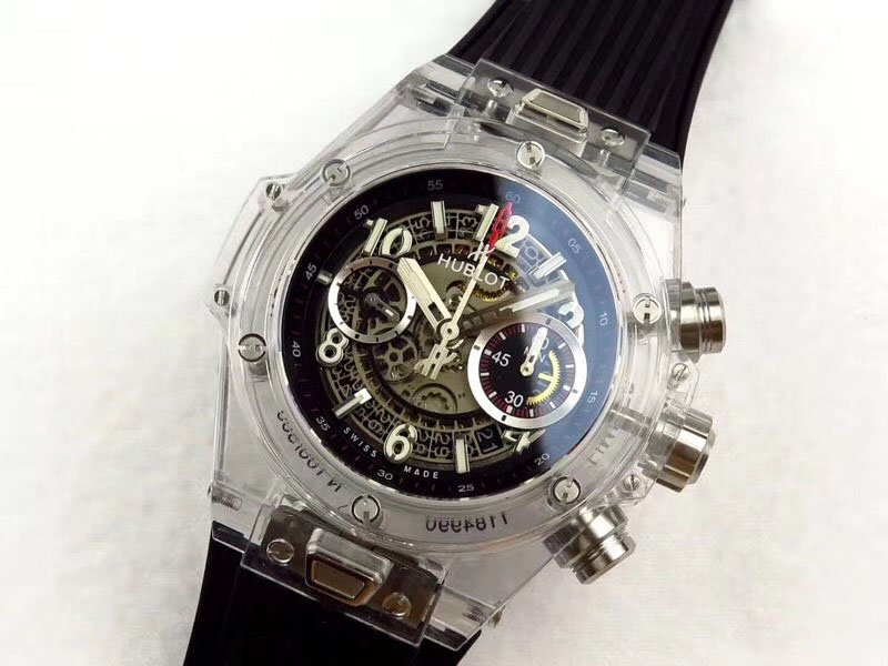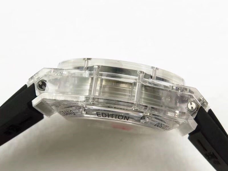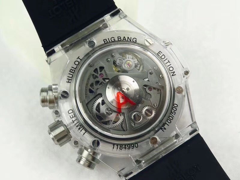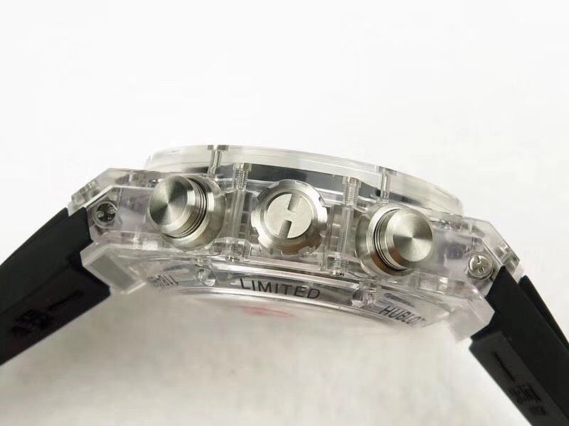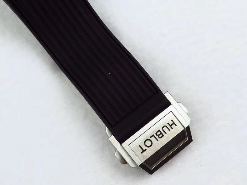 Чёрный (прозрачный) каучуковый ремешок, с двойной, раскладывающейся застежкой Hublot и системой быстрой смены ремешка. |