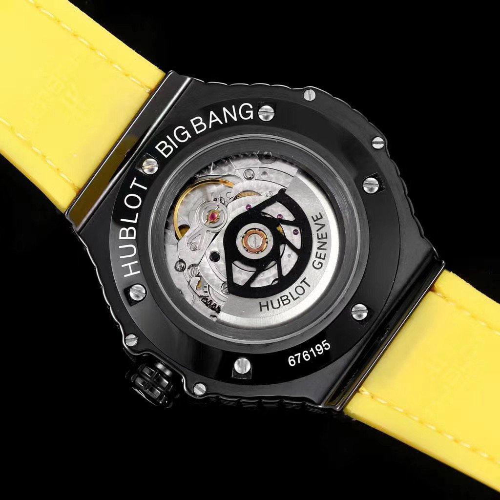 Желтый каучуковый ремешок, с двойной раскладывающейся стальной застежкой Hublot. |