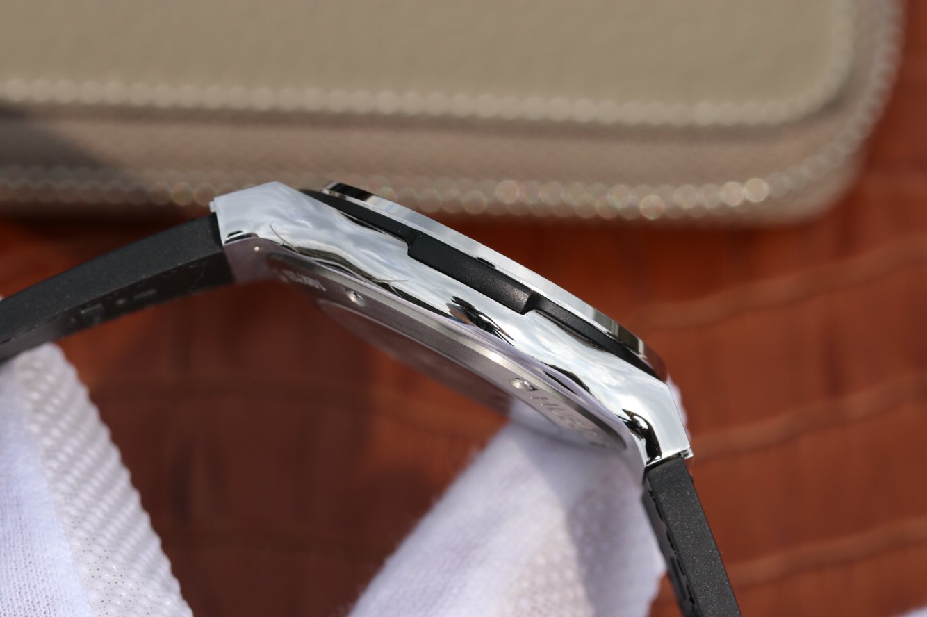 Фиксированный в одном положении 6 Н-образными полированными винтами титановый безель грубой шлифовки. |