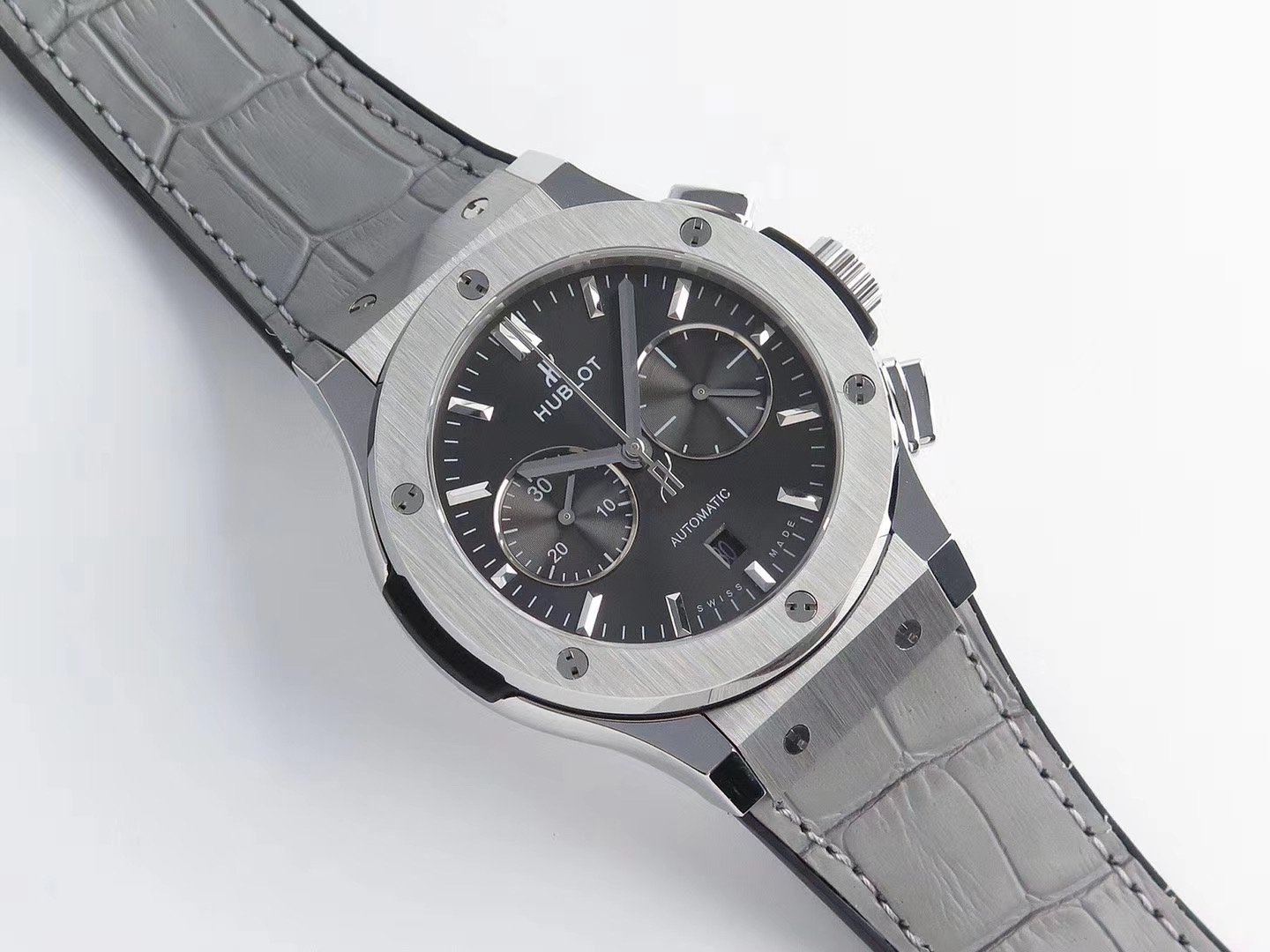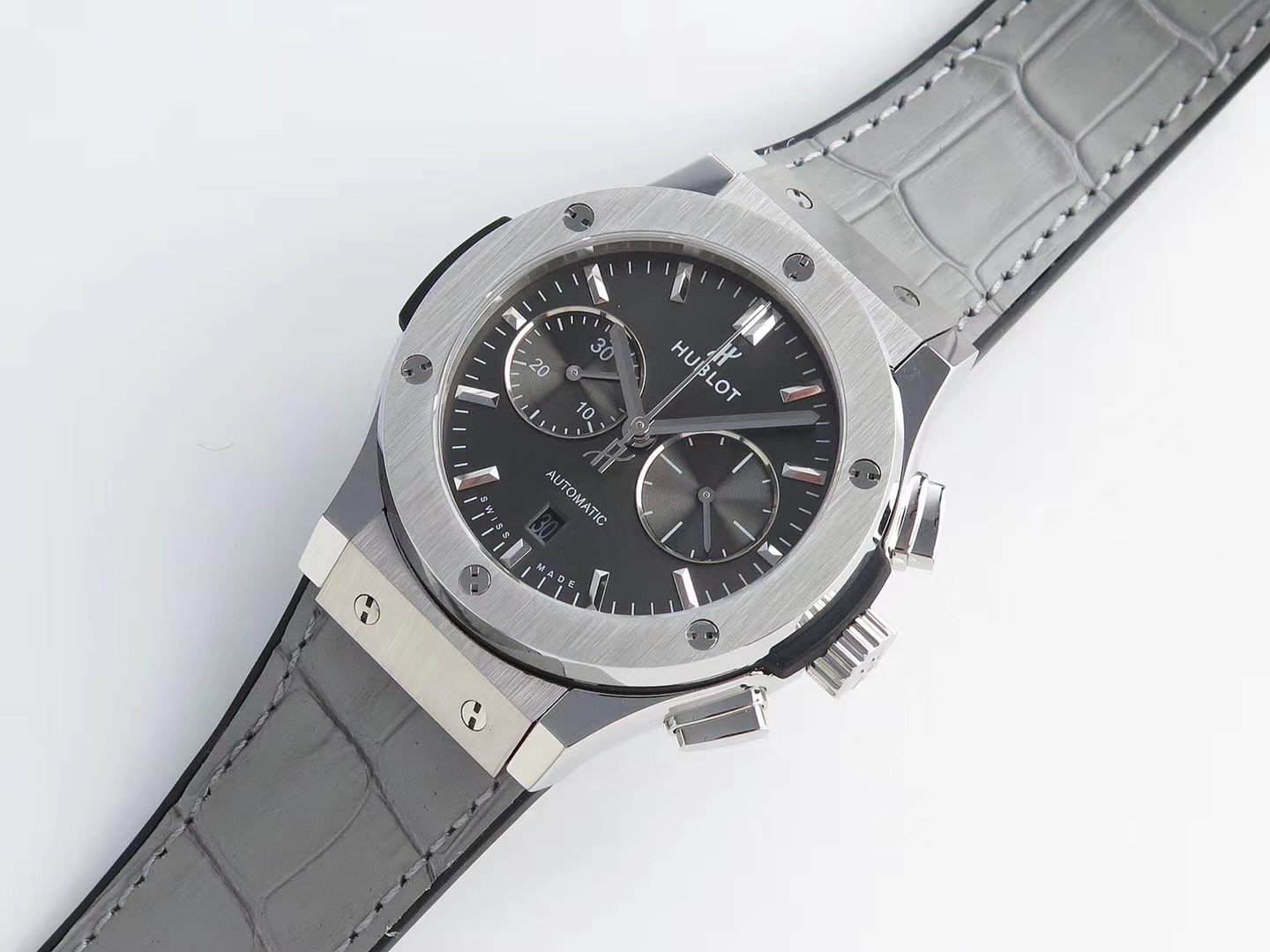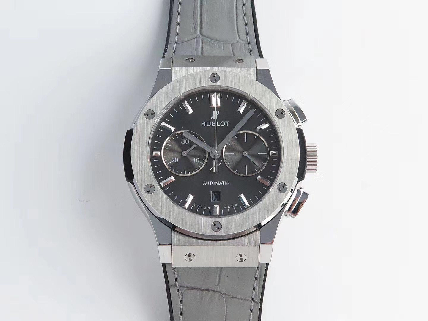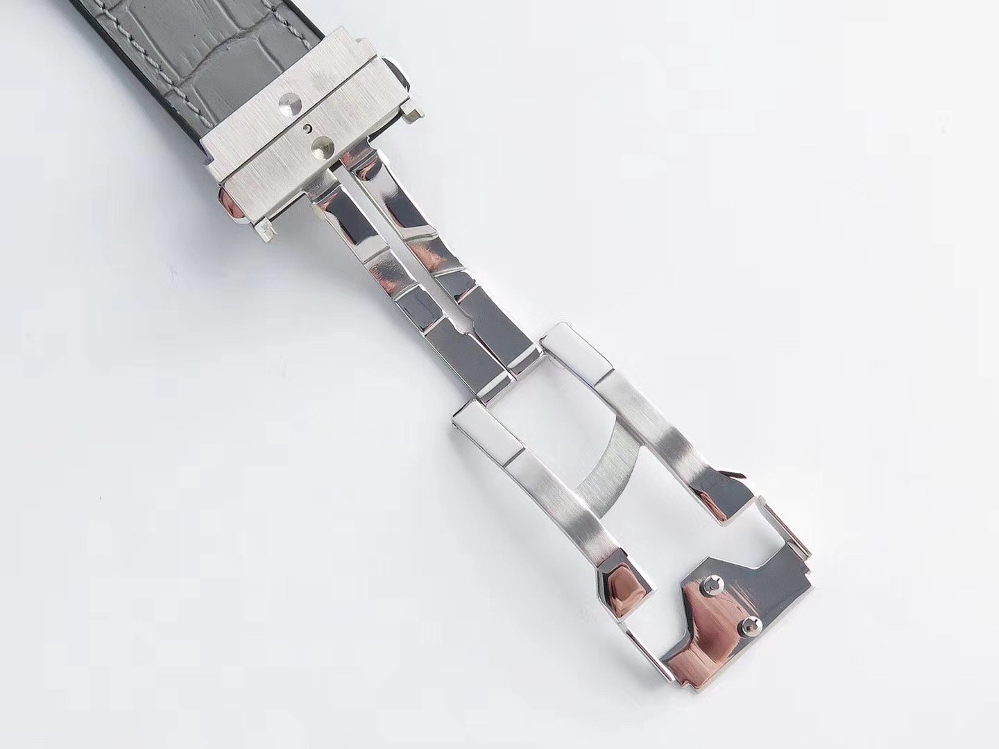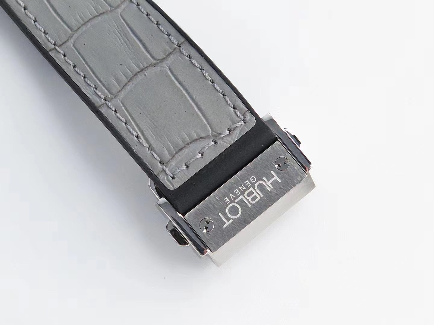 Серый кожаный ремешок, с двойной раскладывающейся стальной застежкой Hublot |