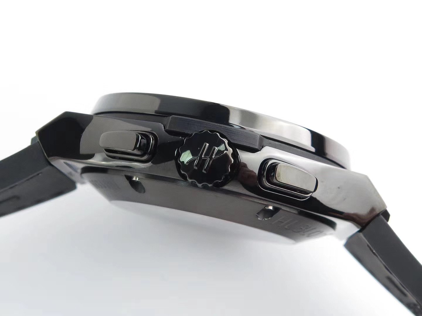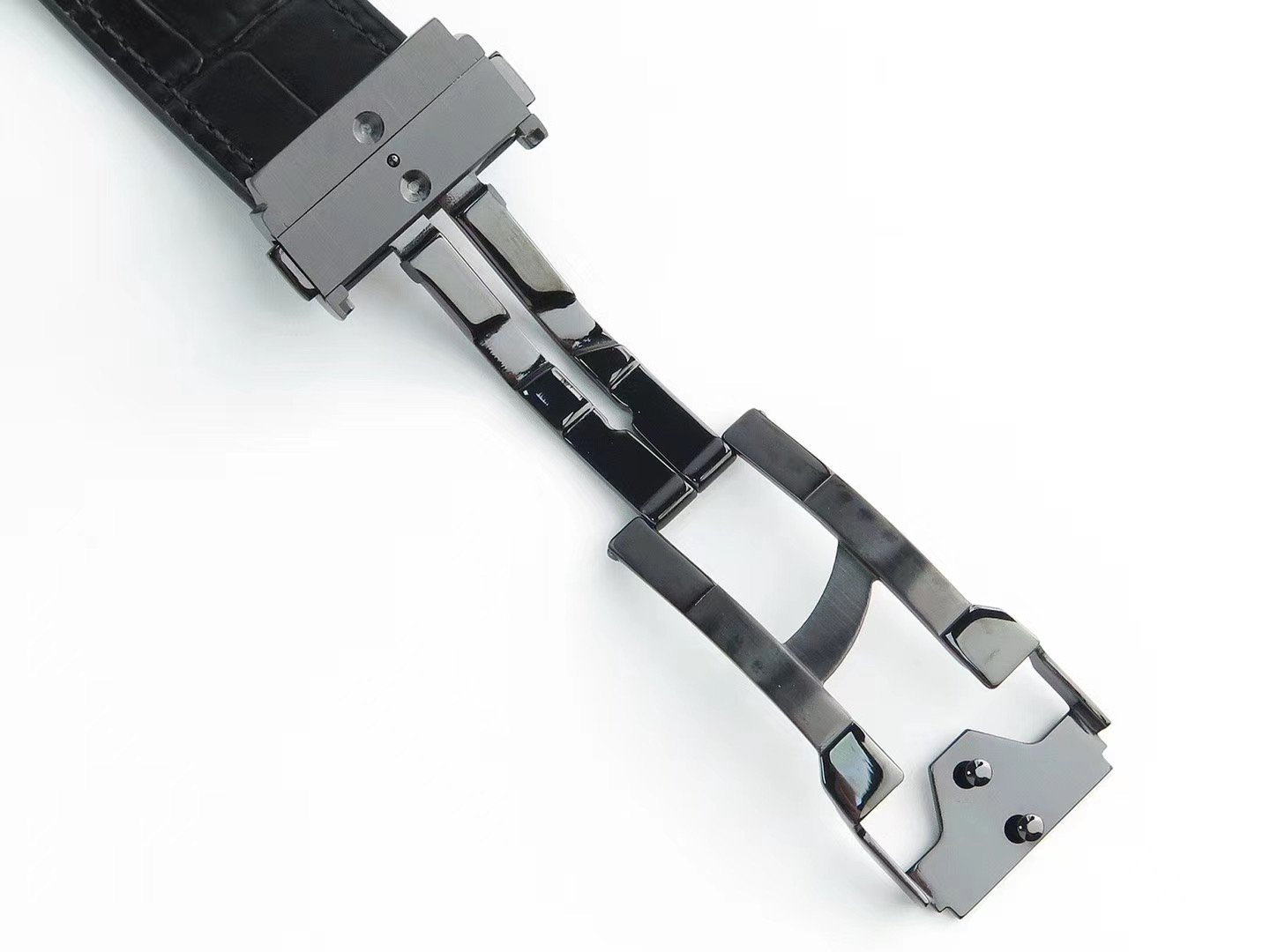 Черный кожаный ремешок, с двойной раскладывающейся стальной застежкой Hublot |