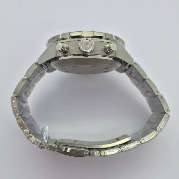 Синий. Часовые риски и мечевидные стрелки, покрытые люминесцентным составом Super LumiNova С1. Счетчики хронографа в отметках на 18 и 12.00 часов и малая секундная стрелка в отметке на 21.00 часов. Окно даты и дня недели в отметке на 15.00 часов |