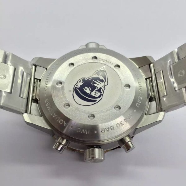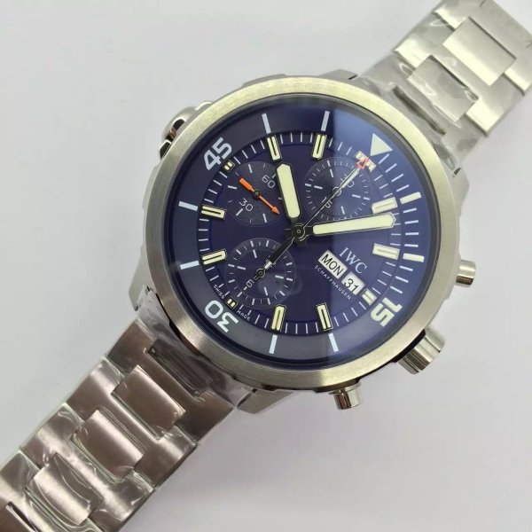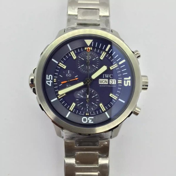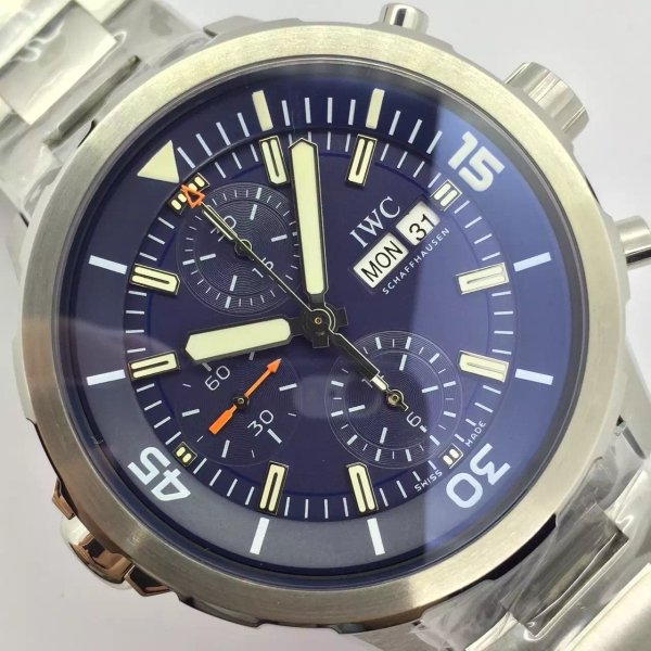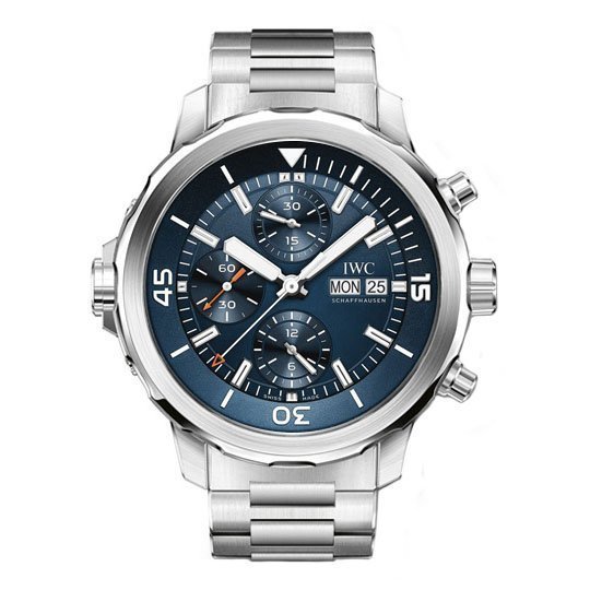 Стальной браслет из сатинированной стали 316L, с двойной раскладывающейся застежкой IWC и системой быстрого укорачивания браслета. Либо черный каучуковый ремешок IWC Aquatimer |