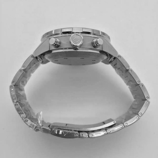 Черный. Часовые риски и мечевидные стрелки, покрытые люминесцентным составом Super LumiNova С1. Счетчики хронографа в отметках на 18 и 12.00 часов и малая секундная стрелка в отметке на 21.00 часов. Окно даты и дня недели в отметке на 15.00 часов |