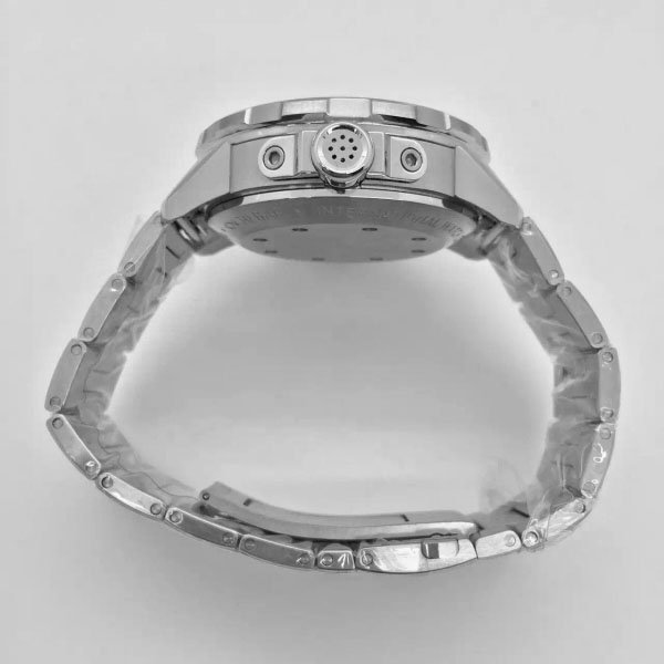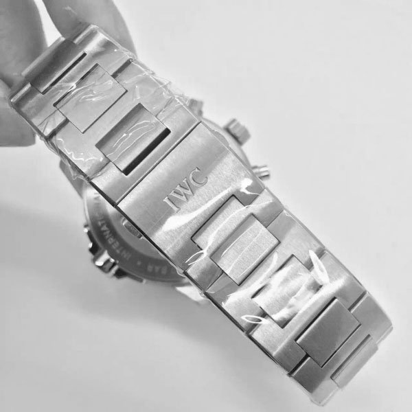 Стальной браслет из сатинированной стали 316L, с двойной раскладывающейся застежкой IWC и системой быстрого укорачивания браслета. Либо черный каучуковый ремешок IWC Aquatimer |