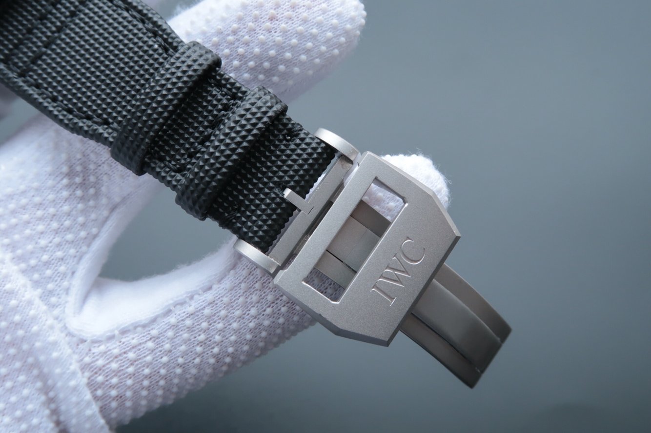 Многослойный черный кевларовый ремешок, с подкладкой из телячьей кожи, с двойной раскладывающейся титановой застежкой IWC. |